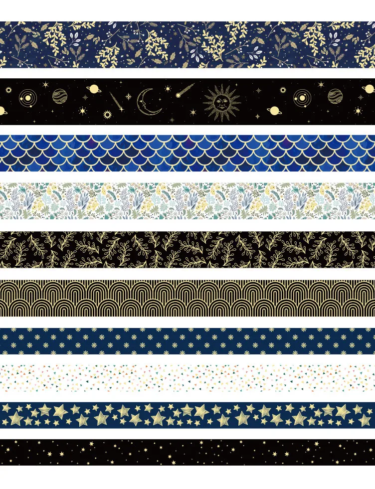 10 рулонов набор декоративного скотча Васи черного и золотого цвета...
