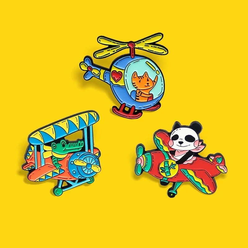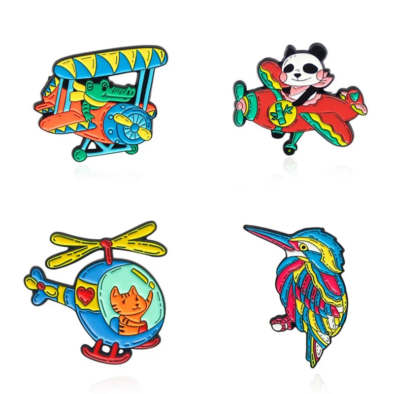 Панда и крокодил летающие на самолете заколки для лацканов милые Мультяшные аниме птица на эмали значки Модные женские декоративные броши ювелирные изделия
