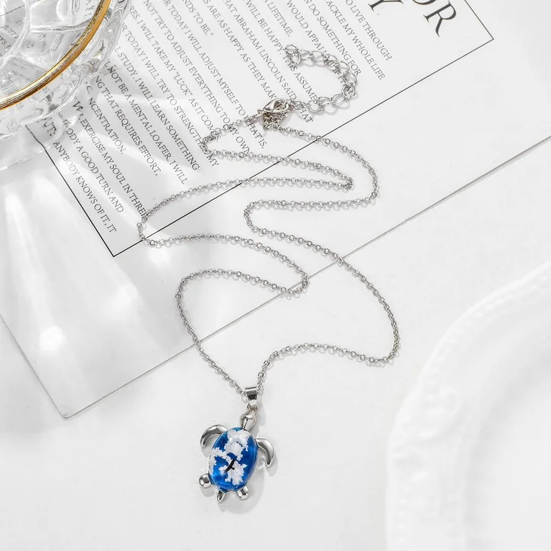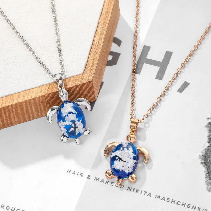 Шикарное прозрачное ожерелье с подвеской в виде черепахи из смолы для женщин, голубое небо, белое облако, луна, ожерелье, модные украшения, подарки