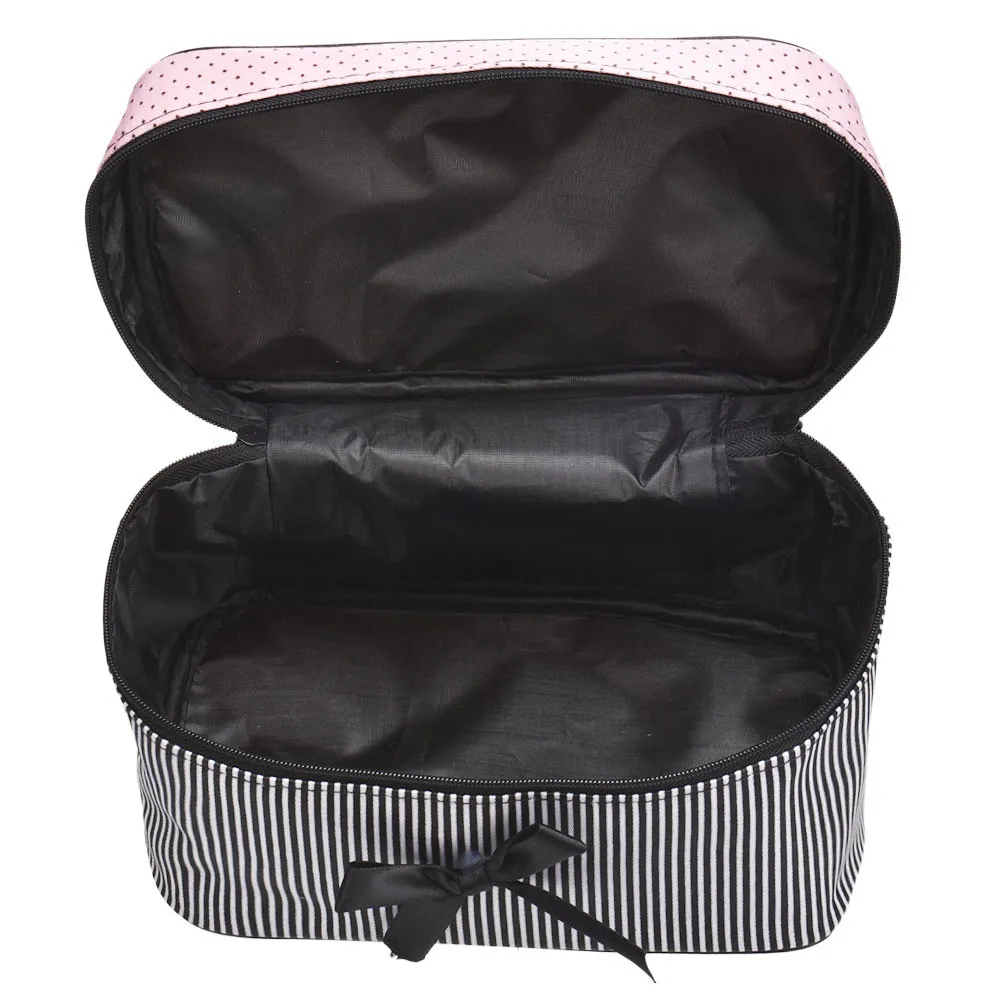Женская дорожная косметичка в полоску с бантом, косметичка для девушек, косметичка для макияжа, органайзер для красивых бюстгальтеров, сумка для туалетных принадлежностей, набор для хранения, чехол для ванной