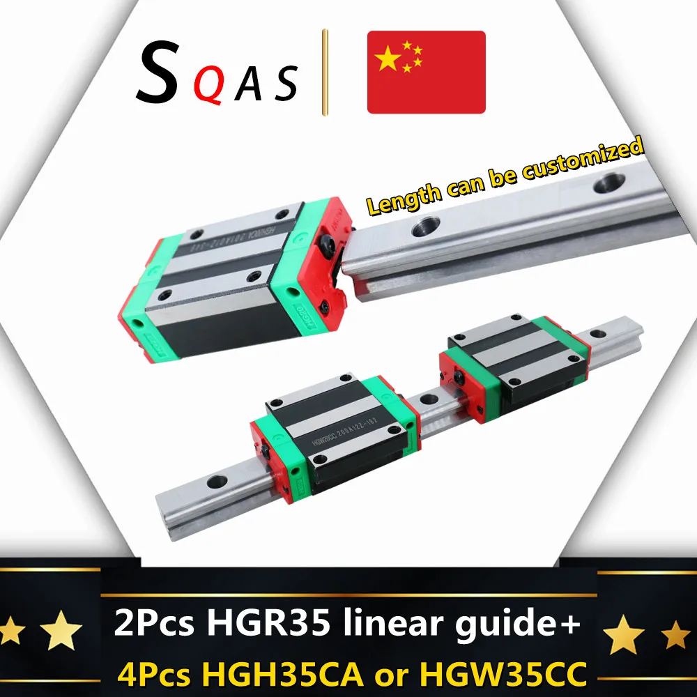 Прямоугольные направляющие с ЧПУ рельсовая линейная направляющая HGR35, 2 шт. + 4 шт. HGH35CA HGW35CCHGH35HA, направляющие с ЧПУ, длина может быть изменена