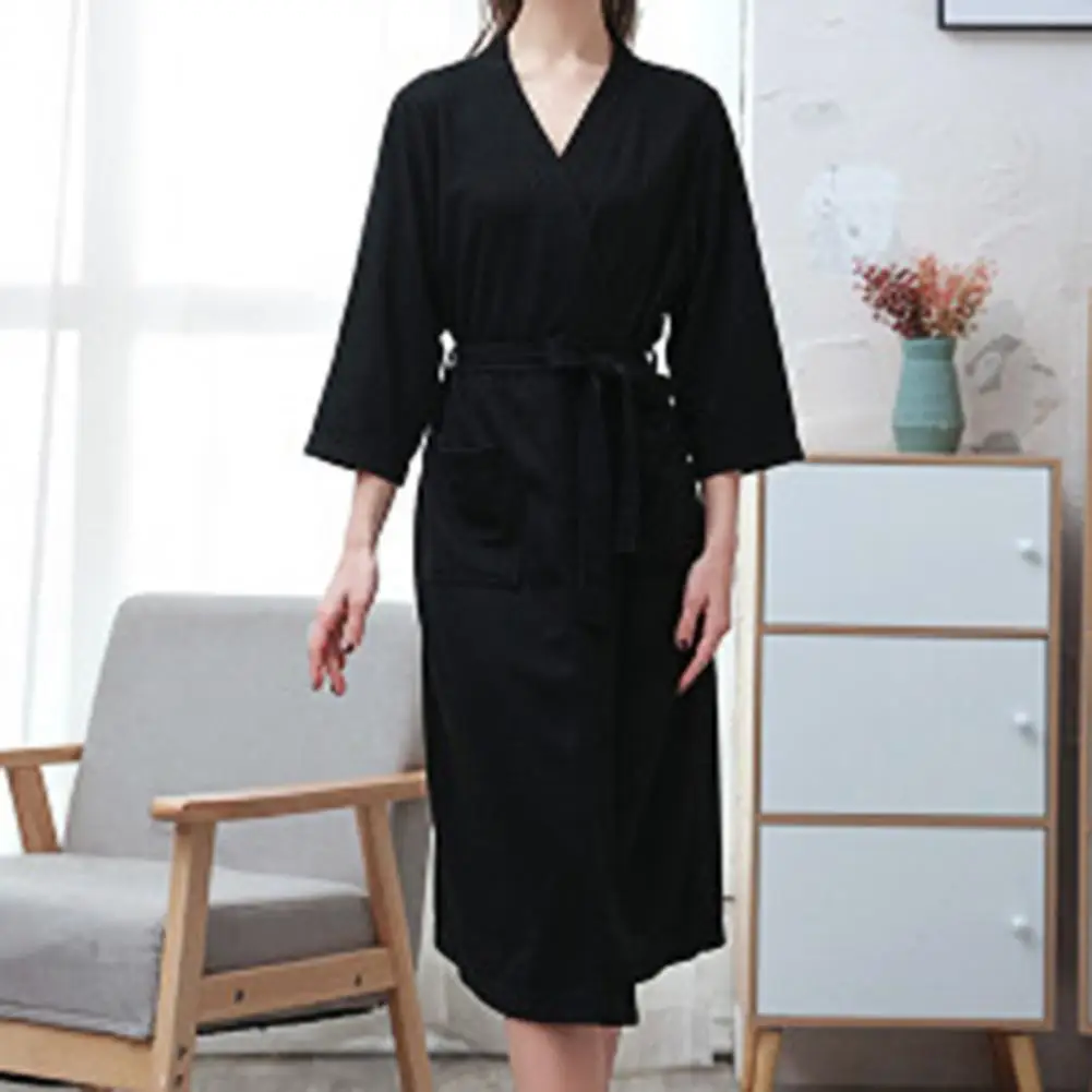 Женский однотонный халат с V-образным вырезом, Кардиган с длинным рукавом, женские пижамные халаты для дома