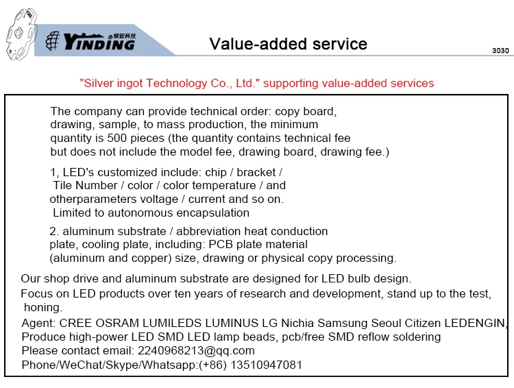 YINDING 3030 светодиодный параметр свойства: