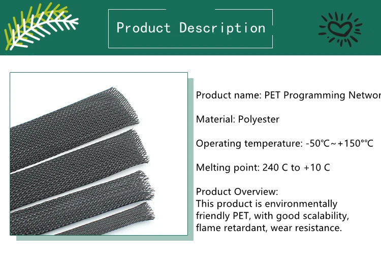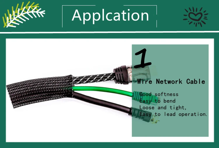 Изделие имеет гладкую поверхность, яркий цвет и различные узоры. Это идеальный продукт для линейного управления и комбинированного применения электроники, автомобилей, самолетов, кораблей, промышленности и дома. Например, втулка из проволочной сетки DVI, втулка из проволочной сетки HDMI, втулка из проволочной сетки для двигателя автомобиля, управление проводами для домашнего кинотеатра, устройство для компьютерного шасси, управление офисными линиями, жгут проводов для автомобиля, защита водопроводных труб, И т. д.