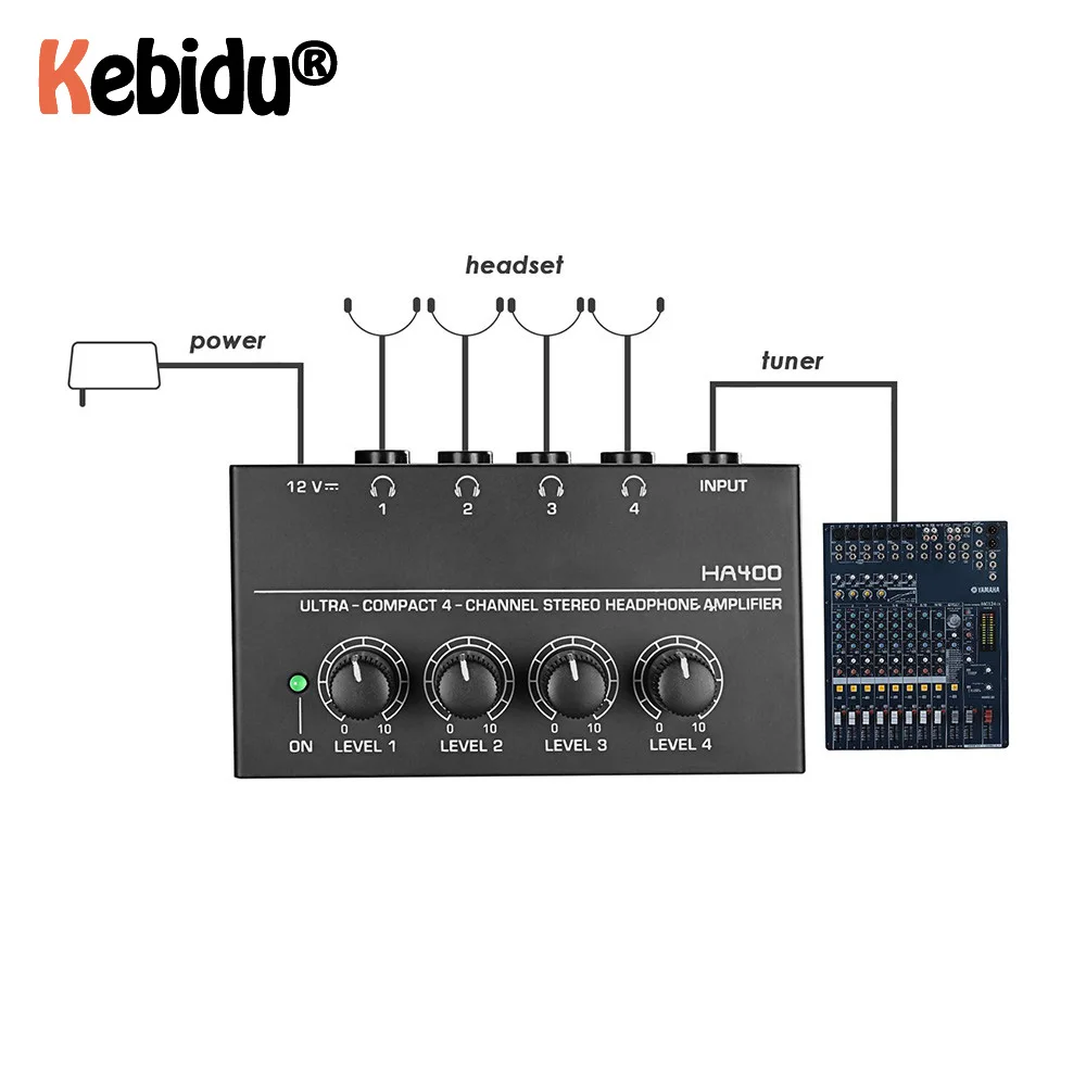 Kebidu новейший HA400 аудио усилитель ультра-компактный 4-канальный Мини o стерео усилитель для наушников с адаптером питания для записи музыки микшер горячая распродажа