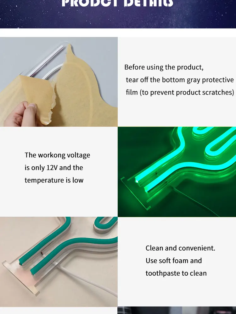 Ночные светильники, которые мы только производим, подходят для украшения спальни, украшения стола, украшения стен бара, с другой стороны, неоновые огни могут использоваться в качестве персонализированных подарков для друзей, семьи, детей, детей