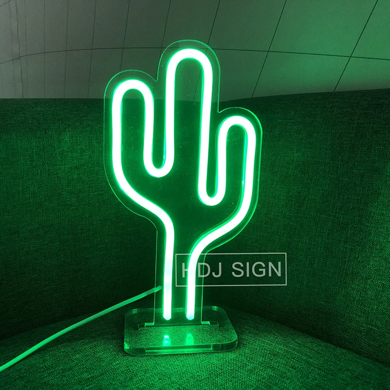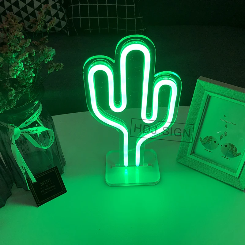 Светодиодный неоновый светильник в виде кактуса, Настенный декор с USB, лампа для спальни, стола, Рождественский ночник для детской комнаты, бара, стола