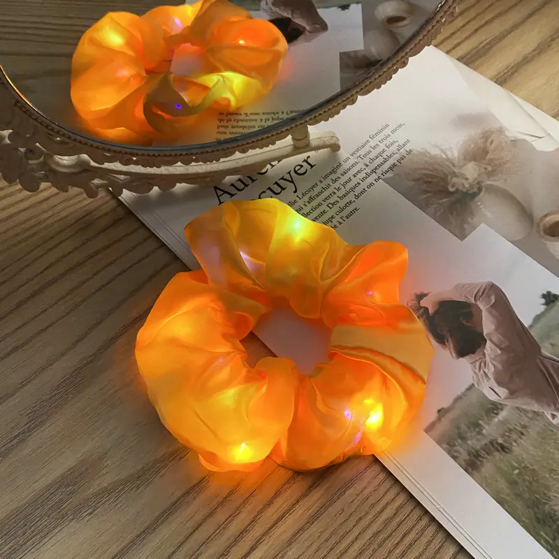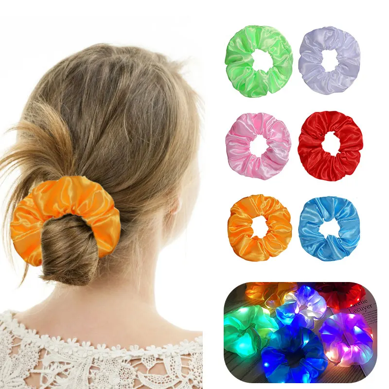 Модные светящиеся эластичные резинки для волос со светодиодной подсветкой, Женская резинка для волос, сатиновые резинки для волос, светящиеся аксессуары для рождественской вечеринки, головные уборы