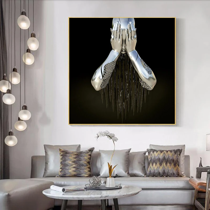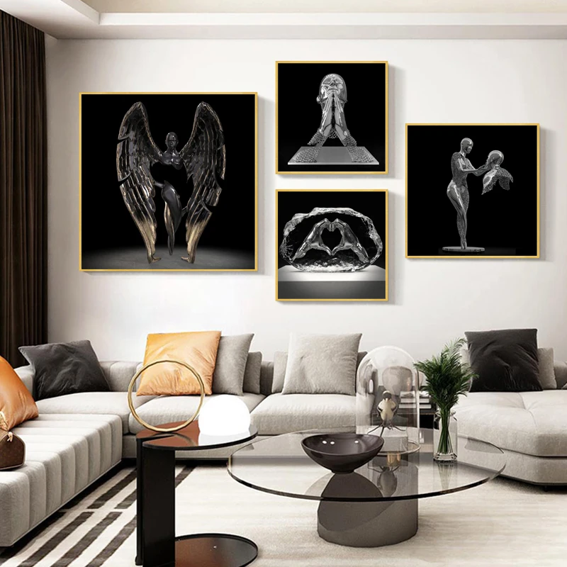 Металлическая статуэтка, художественные принты, Картина на холсте, черная скульптура, плакат и печать, Настенная картина для гостиной, домашний декор