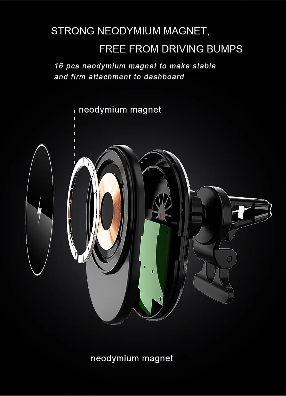 15 Вт магнитное беспроводное автомобильное зарядное устройство с креплением подставка для iPhone 13 12 Pro Max Мини автоматический магнит с вентиляцией Быстрая зарядка держатель для телефона