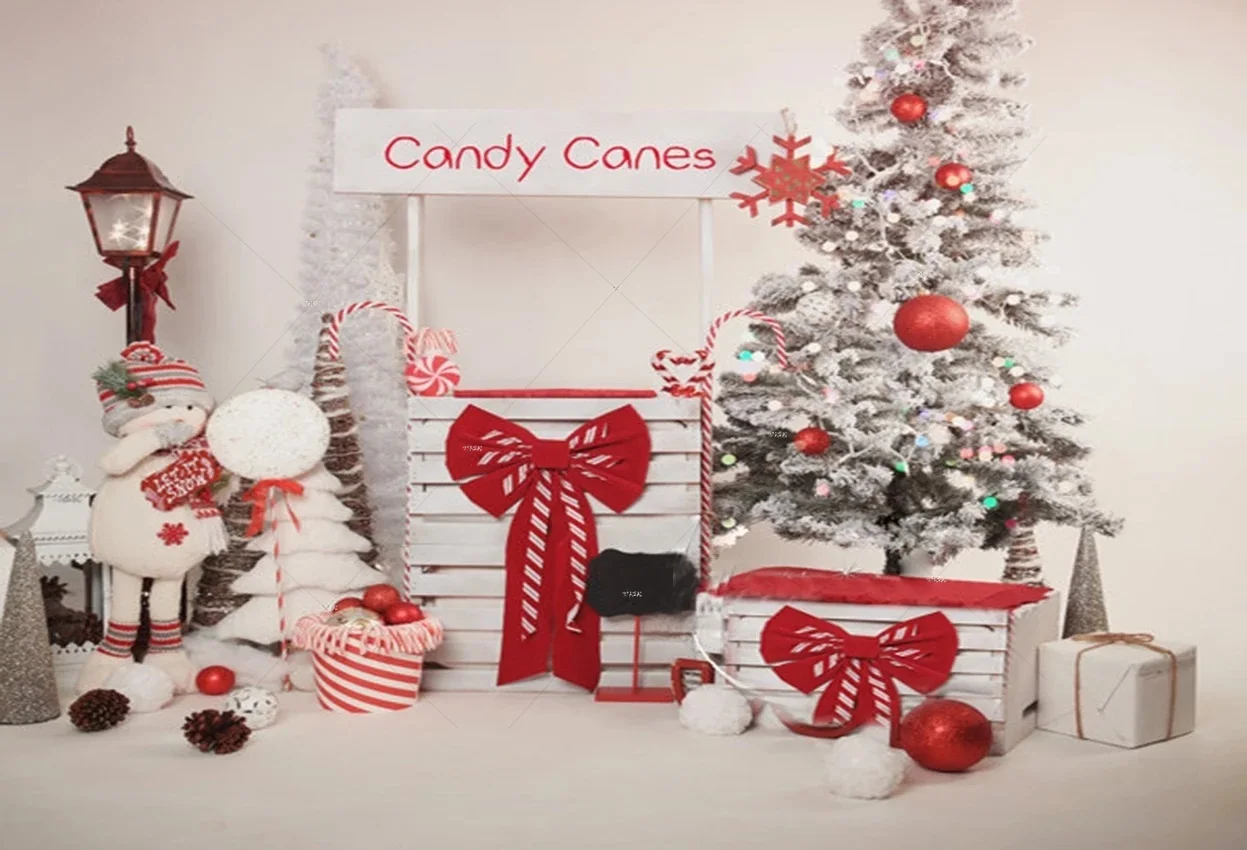 Рождественский фон для детской семейной фотосъемки с изображением красных конфет трос тележки фона зимней снежной елки реквизит для портретной фотосъемки в студии