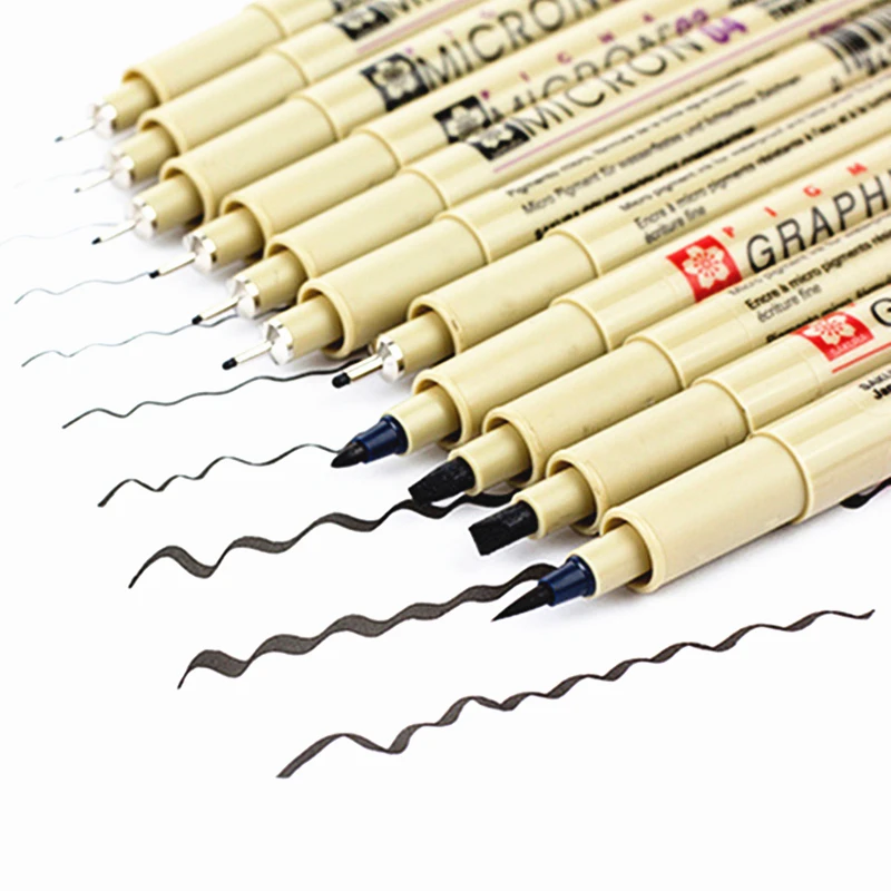Пигментный лайнер, ручка Pigma, маркер Micron, ручка 0,05 0,1 0,2 0,3 0,4 0,5, разные наконечники кисти, черный тонкий лайнер