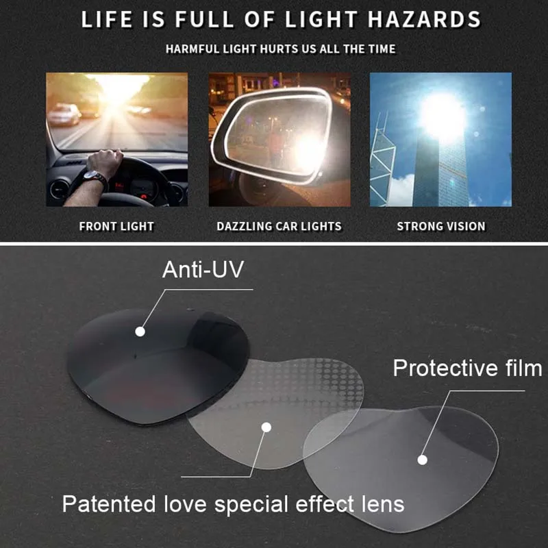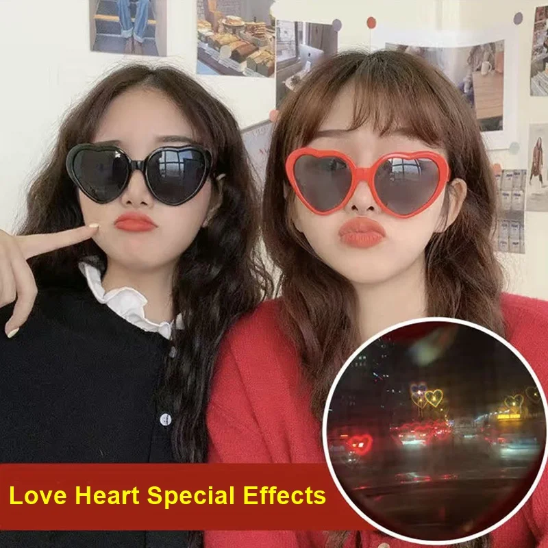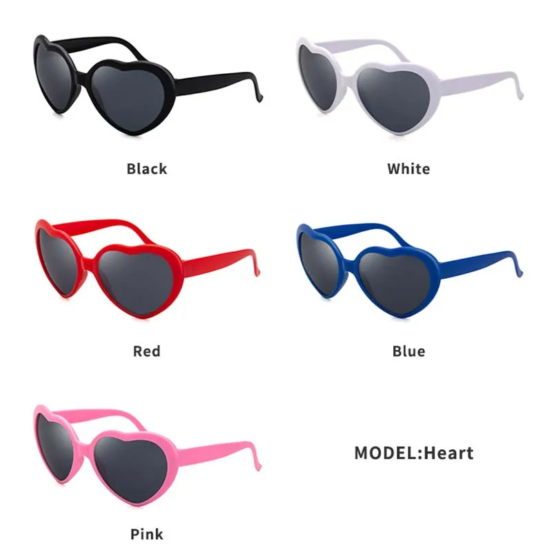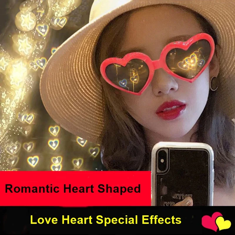 Женские солнцезащитные очки в форме сердца, очки с эффектом дифракции в виде сердца, меняющие свет, 2021