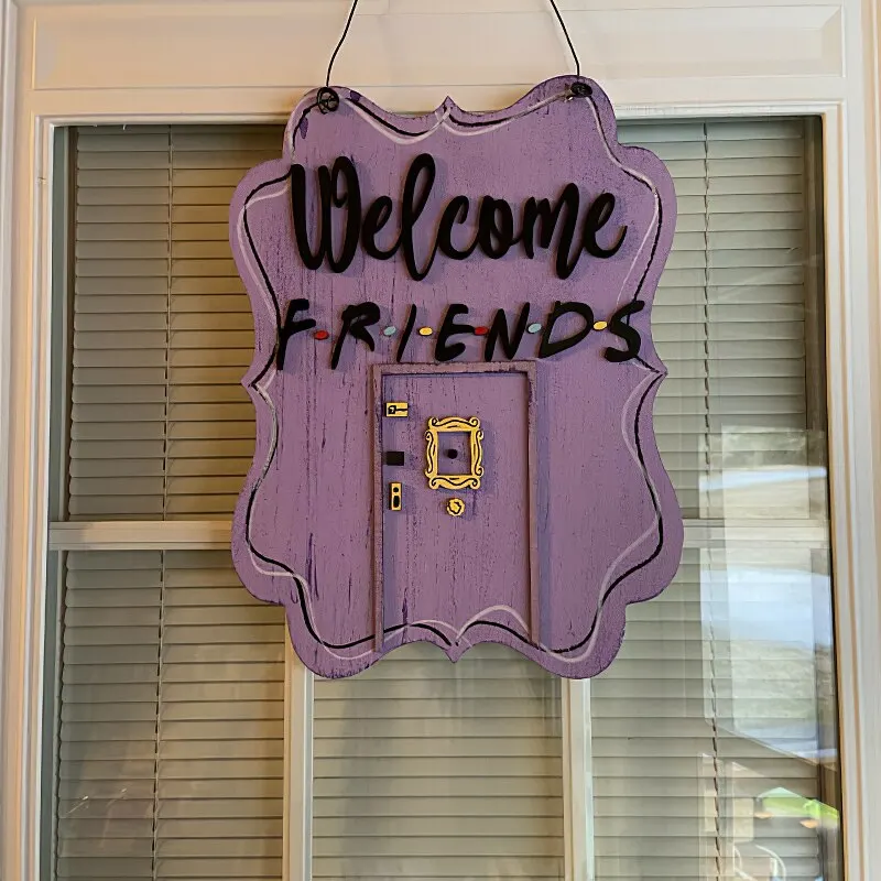 Приветствуем друзей!Милая дверная доска и знак в стиле друзей, чтобы приветствовать ваших друзей в вашем доме.