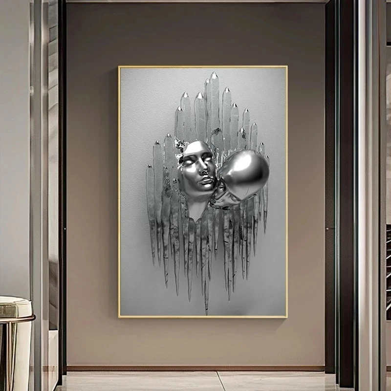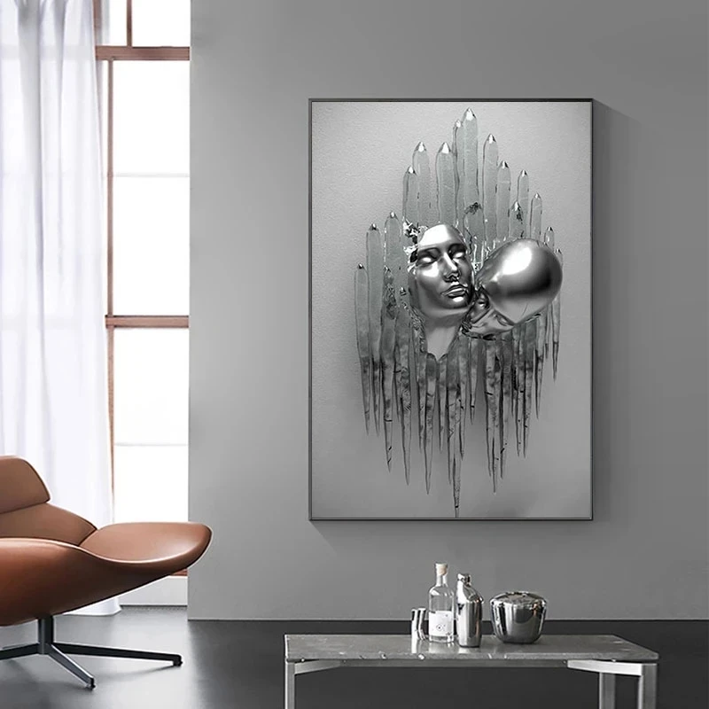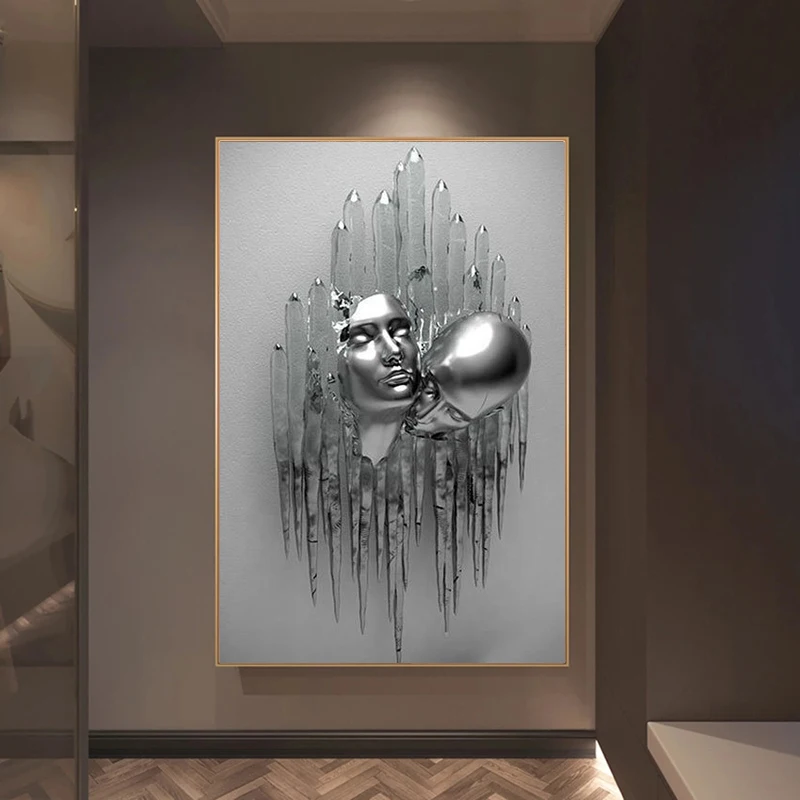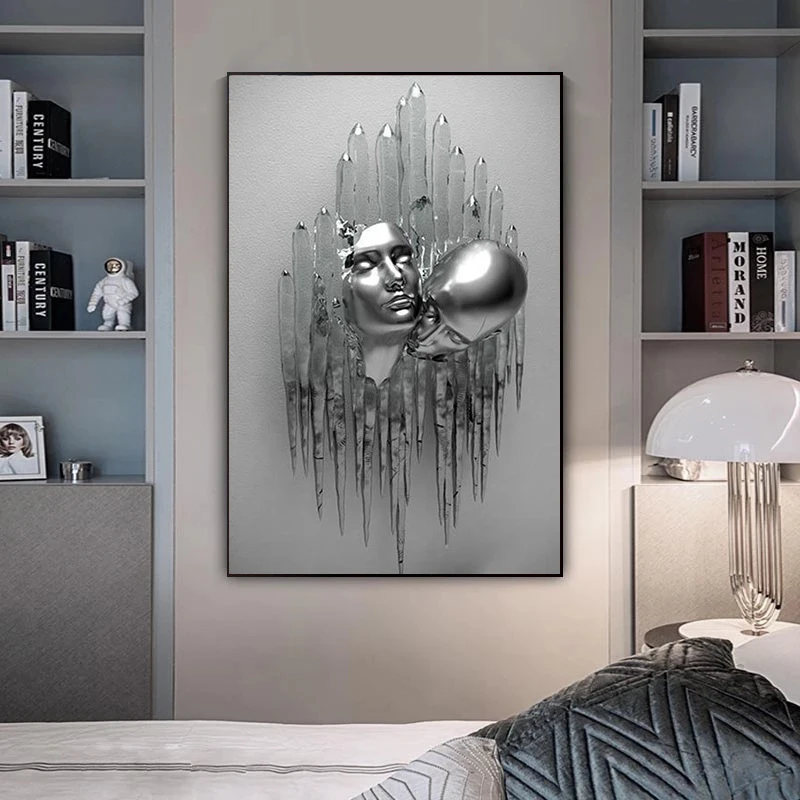 Картины на холсте, современные, фигурка из серебра, Романтический, абстрактный постер, настенные картины для гостиной, Настенный декор, Куадрос