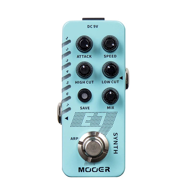 E7-это педаль MOOER Polyphonic Guitar Synth, вторая педаль MOOER New Micro series. E7 может превратить вашу гитару в типичный электронный синтезатор, без необходимости специальных пикапов или модификаций инструмента. Каждый тон с индивидуальным arpeggiator, высокой/низкой частотой, атакой, функцией скорости, позволяет пользователям легко формировать тон в своем уме, исследуйте горизонт тона с E7.7 различных типов совершенно новых синхронных тонов MOOER.Индивидуальный Arpeggiator для каждого тона.7 слотов для хранения преднаборов пользователей.Прошивка обновляется через USB.Характеристики:Вход: 1/4 ''подойдет как для повседневной носки, так jack (импеданс 2,2 м Ом)Выход: 1/4 ''моно Джек (сопротивление 100 Ом)Источник питания: 9 В DC трансформатор (внутренний отрицательный внешний), MOOER Micro Power рекомендуется. (не входит в комплект)Ток: 150 мА