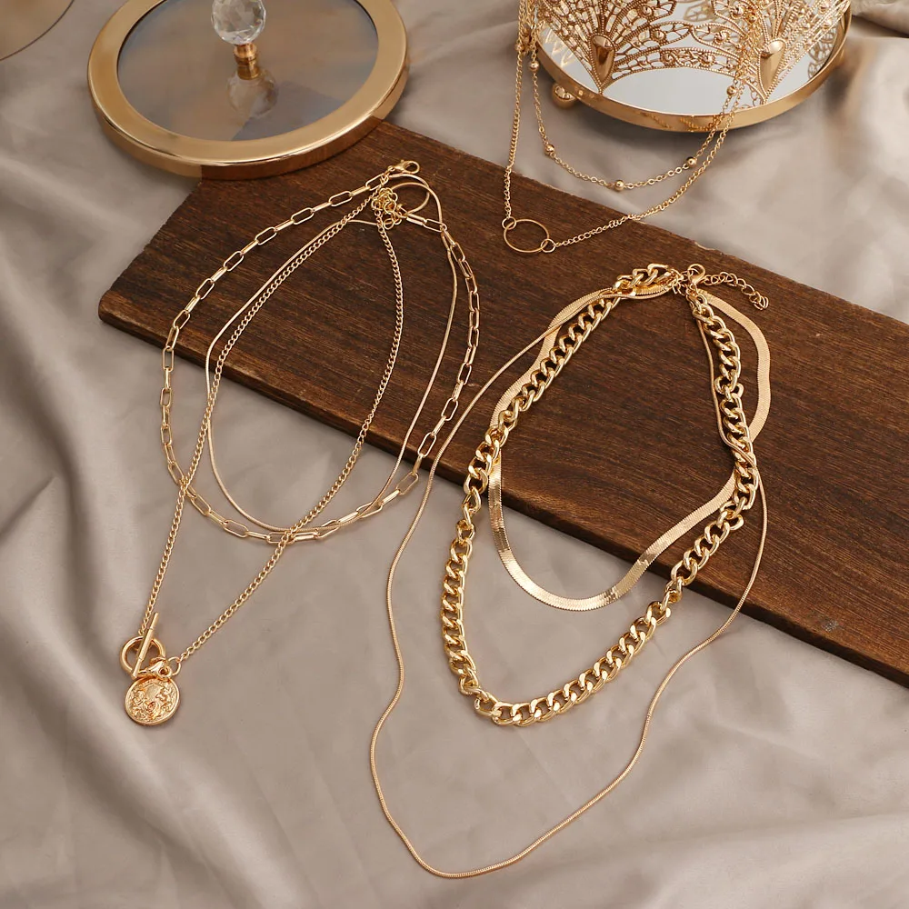 Винтажное многослойное ожерелье-цепочка KOTiK 2022 для женщин, модн...