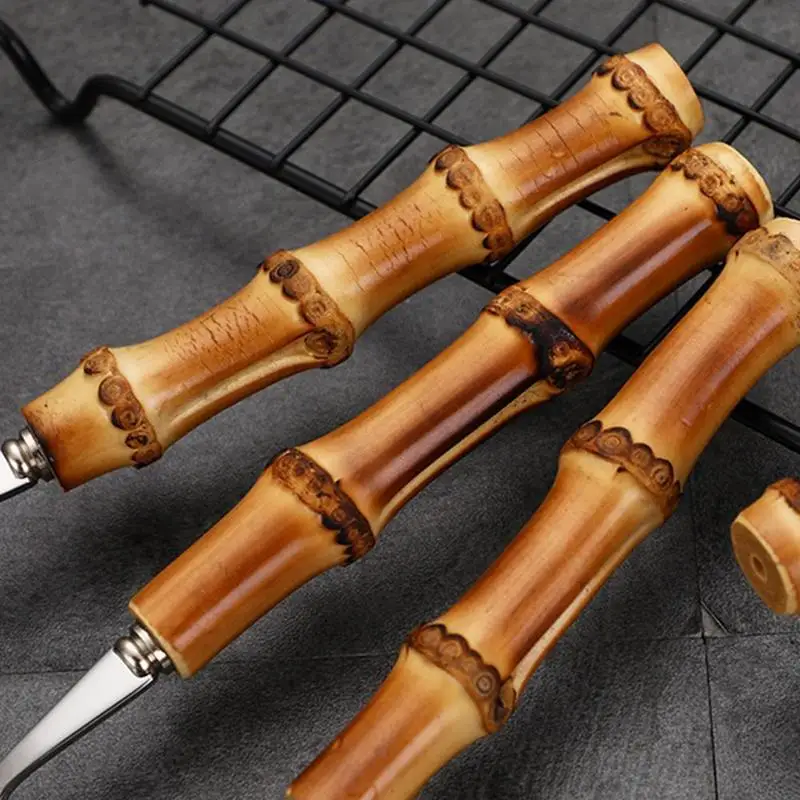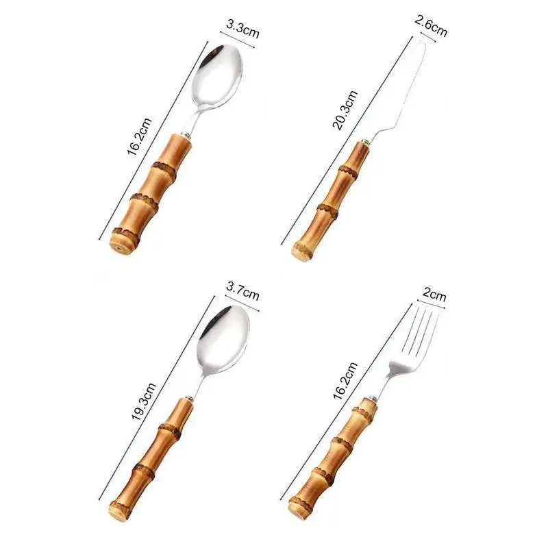 Натуральная посуда с бамбуковой ручкой, с ножами для стейка, вилками, в комплект входят столовые приборы, ножи, стальные ложки, столовые приборы, набор H3G5