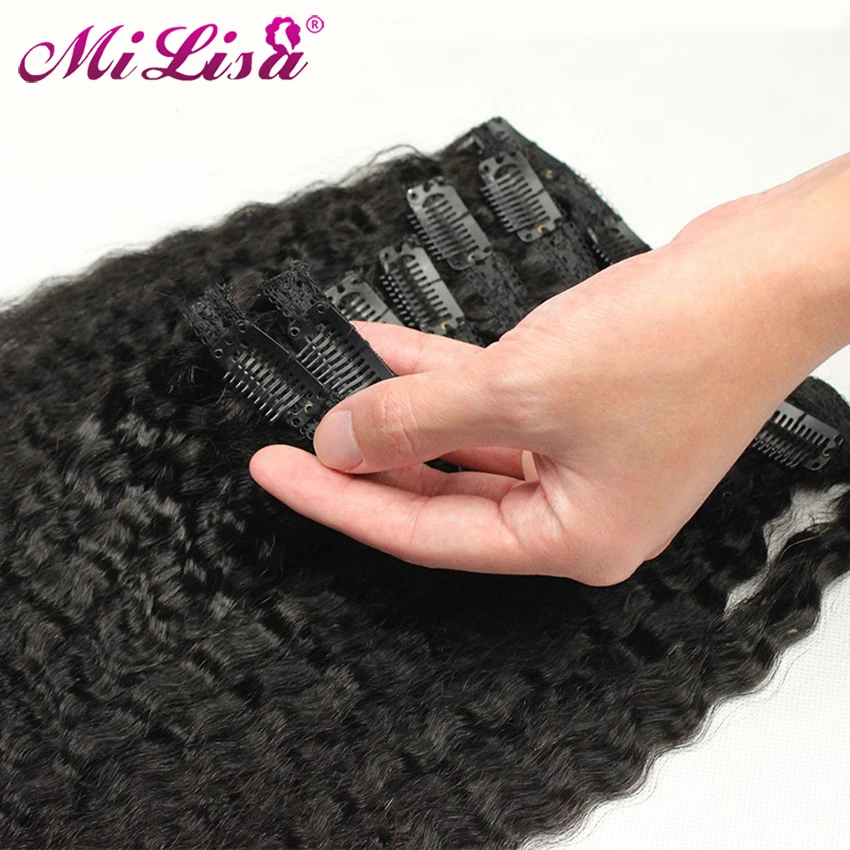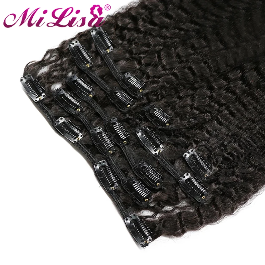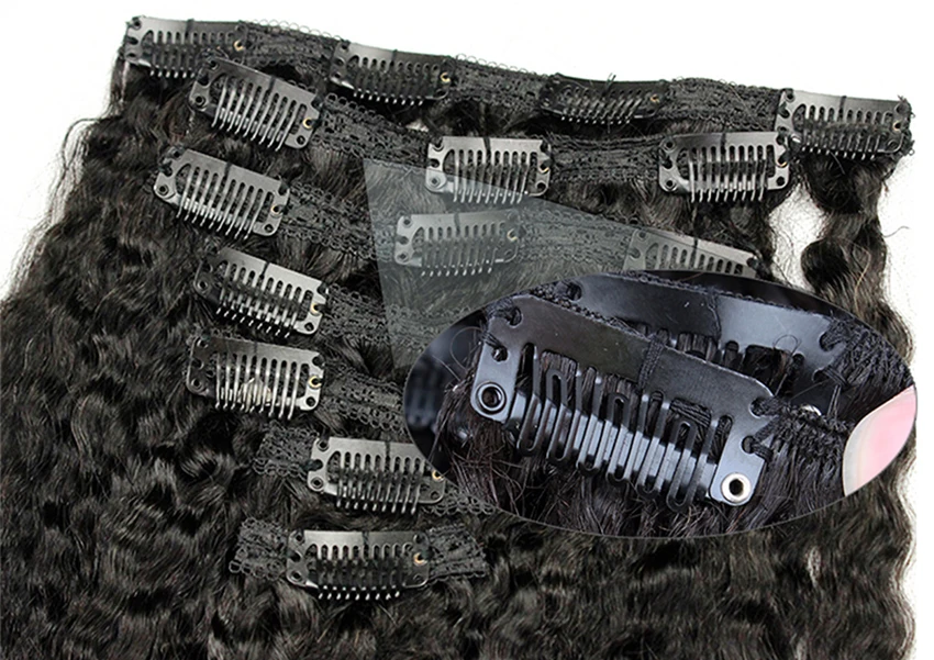 Кудрявые прямые заколки для волос, человеческие волосы для наращивания, естественный цвет, 8 шт.компл. полноголовые бразильские волосы Remy для наращивания, заколки