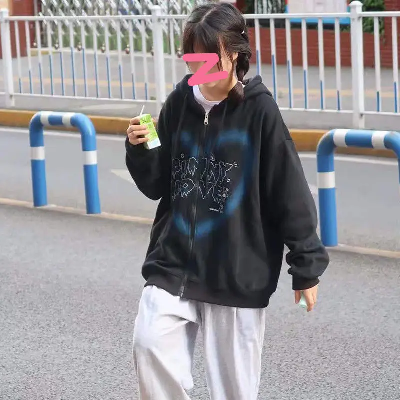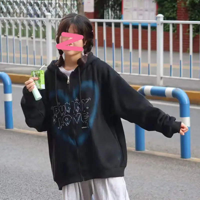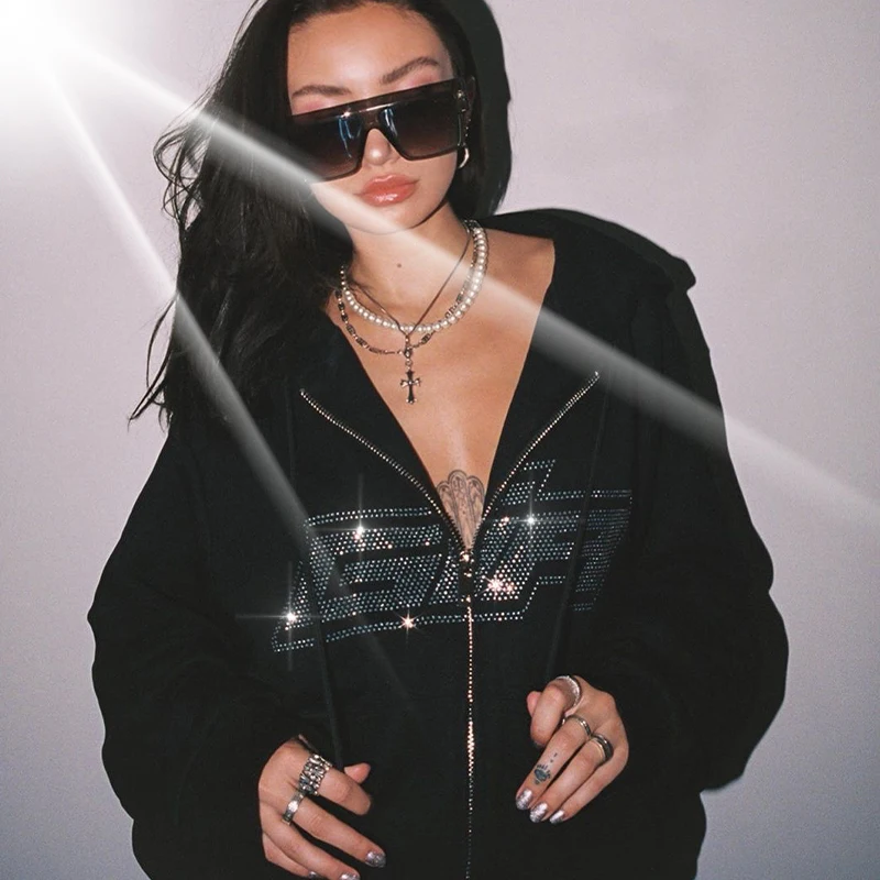 Женские толстовки на молнии Y2K стразы, модные однотонные свитшоты с надписью, осень 2021, Повседневная винтажная уличная одежда большого размера, Топ