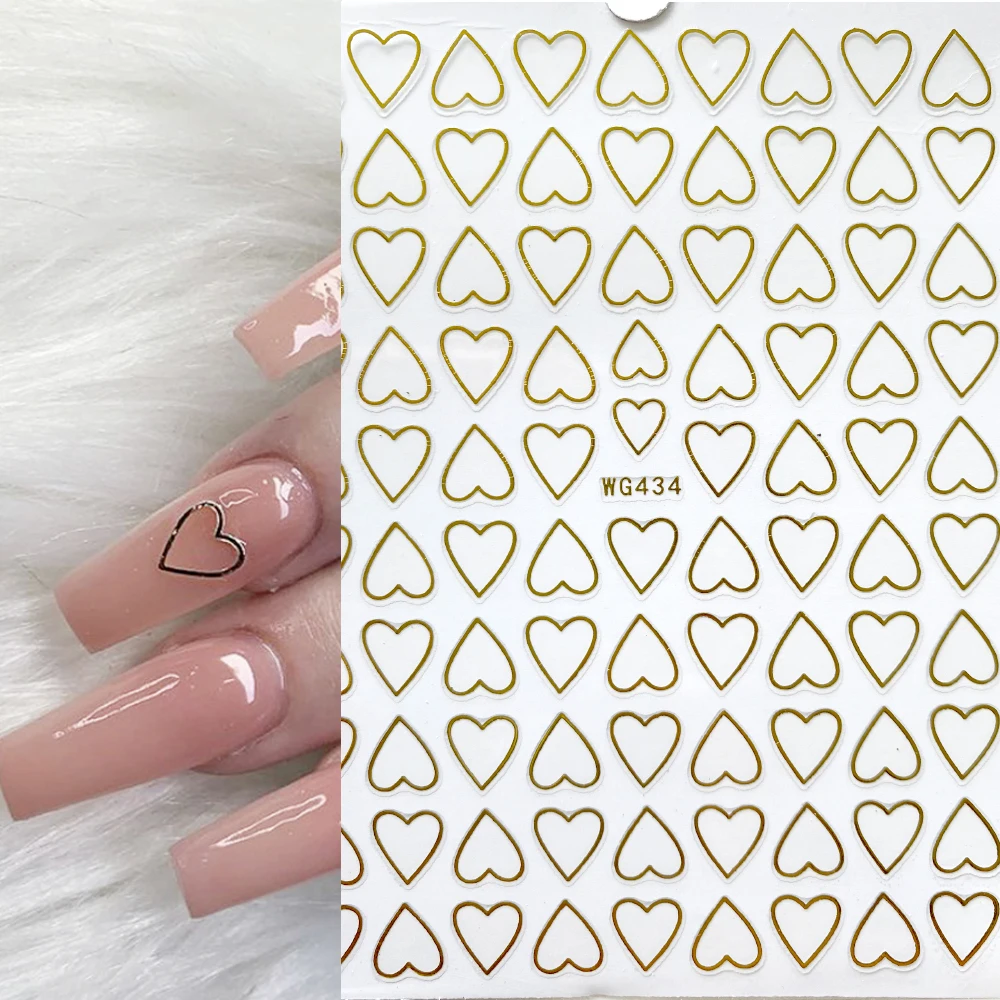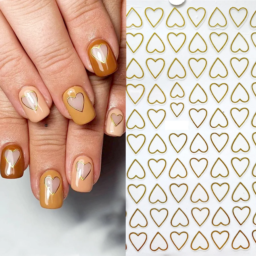 Наклейки для ногтей, 1 шт., золотистые, в форме сердца