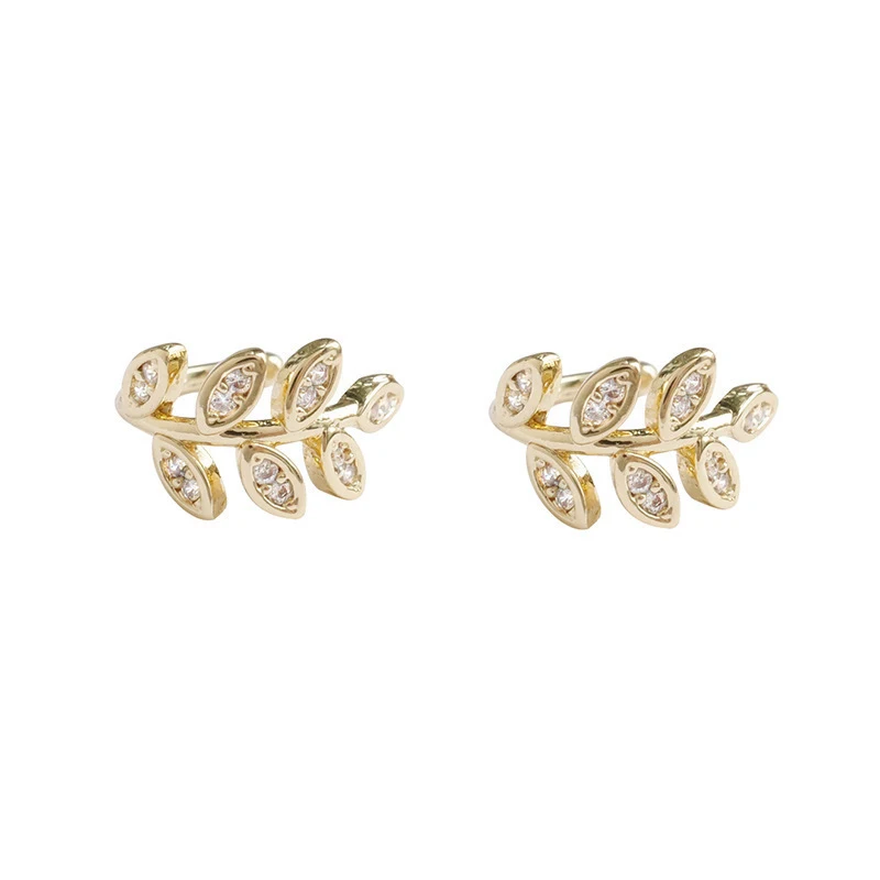 Каффы для ушей женские, с золотыми листьями, 1 шт., циркониевый заж...