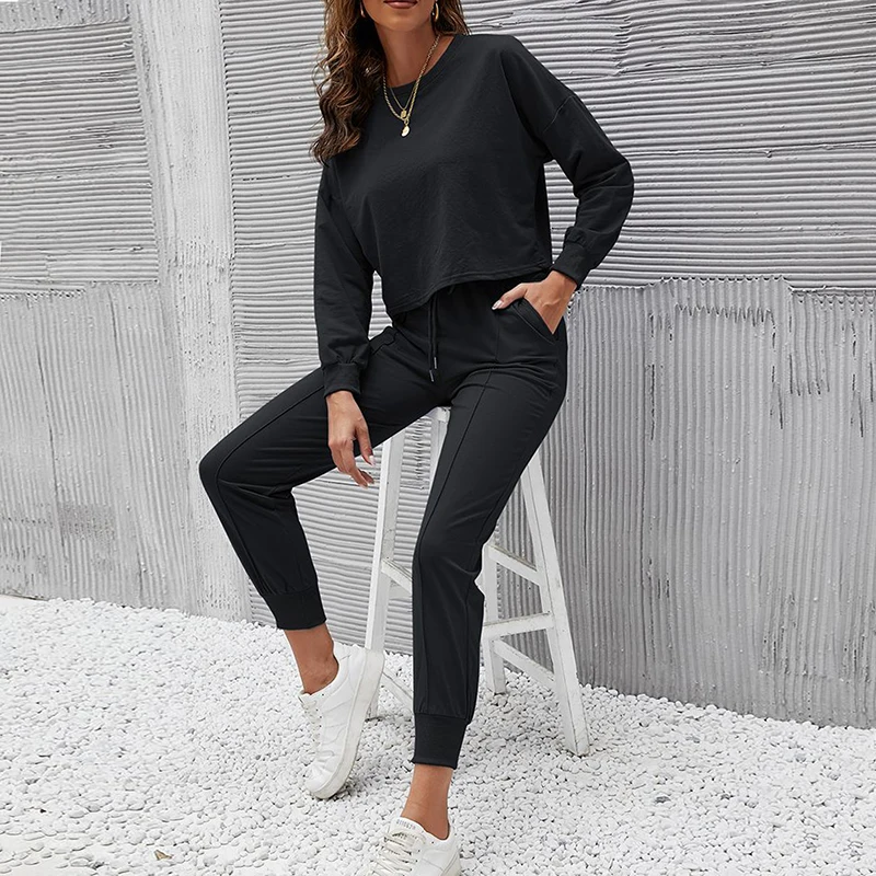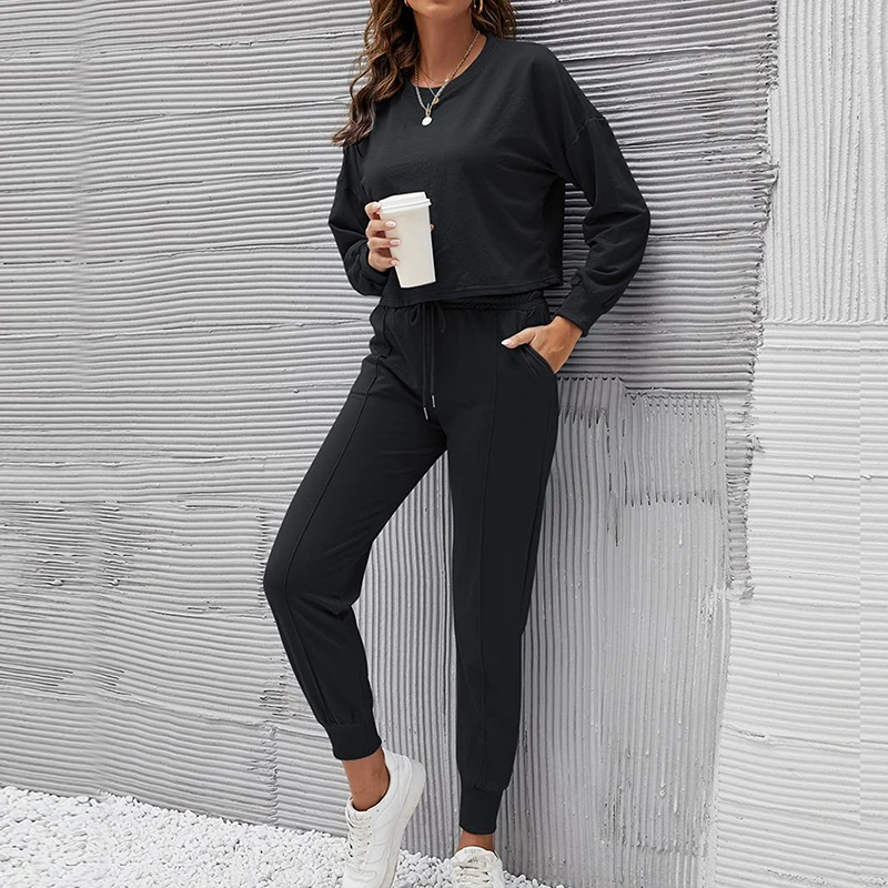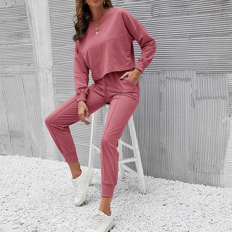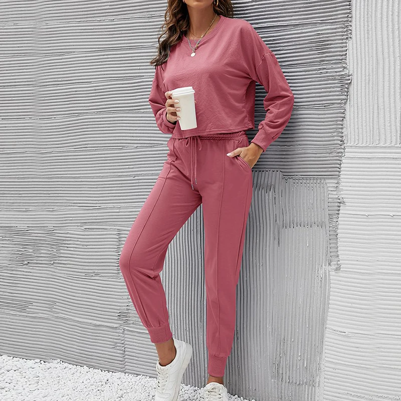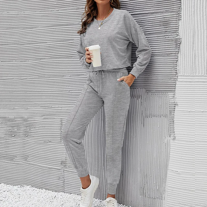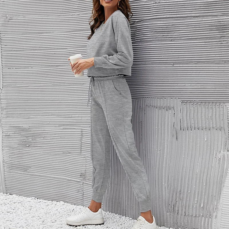 Спортивные костюмы, женский уличный свитшот + длинные спортивные брюки на шнуровке, костюмы, повседневная однотонная одежда, спортивный костюм, женский комплект 2 шт.