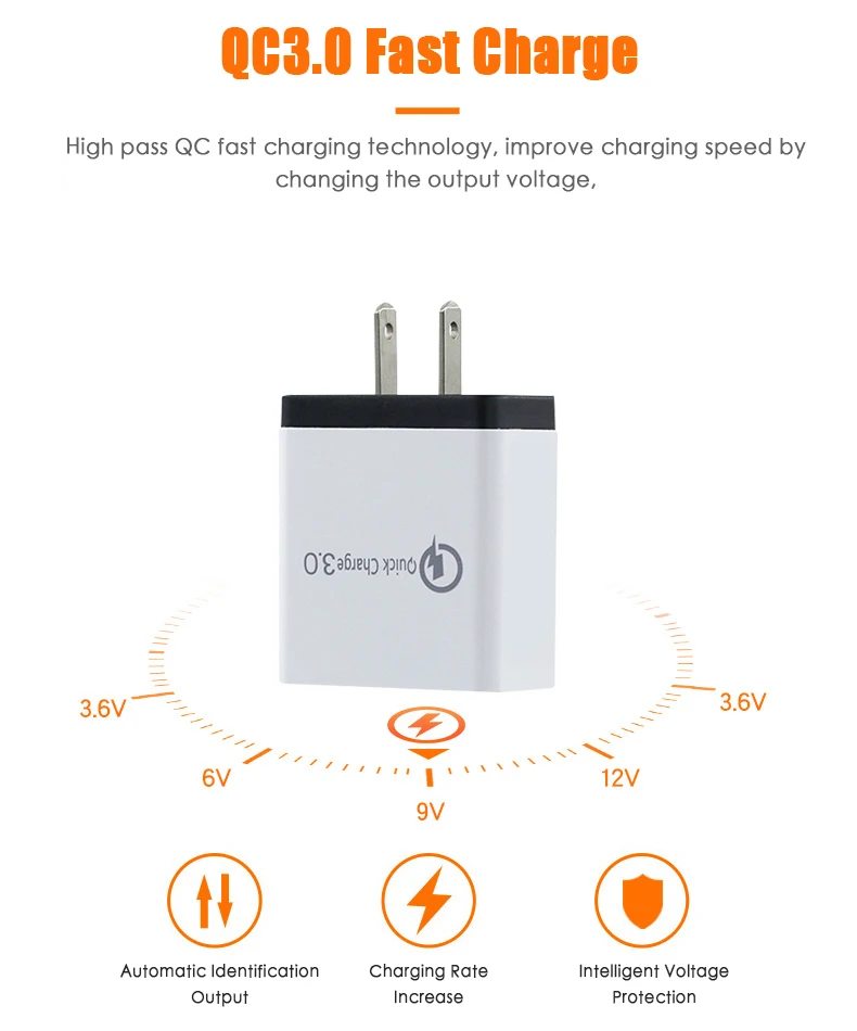 Настенный адаптер для быстрой зарядки, 3 А, 4USB, Quick charge 3,0 для IPhone12 Pro, Xiaomi Mix 4, источник питания для телефона, зарядное устройство для США