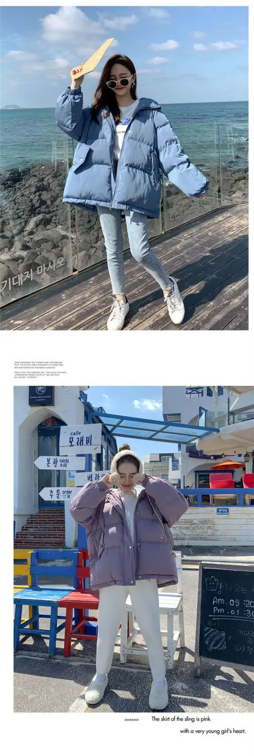 Женская хлопковая куртка, однотонная Свободная Повседневная теплая ...