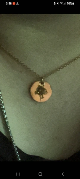 Ожерелье очень красивое, точное, как в описании. Кроме того, он не стал уродливым, иногда я забываю удалить его и спать или купаться с ним, и он не стал зеленым, и он тоже не раздражает меня. Отличный продукт