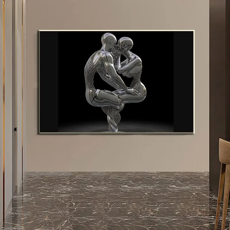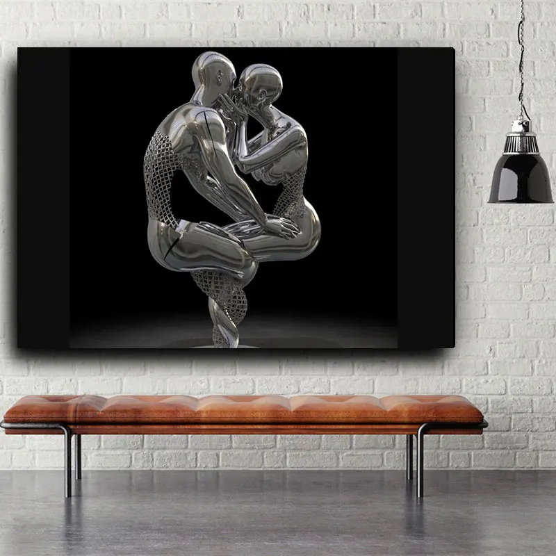 Металлическая фигурка, статуя, искусство, холст, живопись, романтические абстрактные постеры и принты, настенные картины, Современная гостиная, украшение для дома