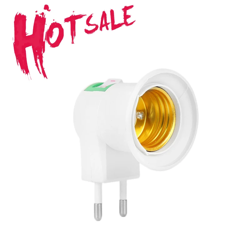 Лидер продаж, E27 адаптер для штепсельной вилки европейского стандарта, розетка светодиодный светильник ильника с переключателем розетки управления включением и выключением питания, патрон для лампы с винтовым цоколем E27, Прямая поставка