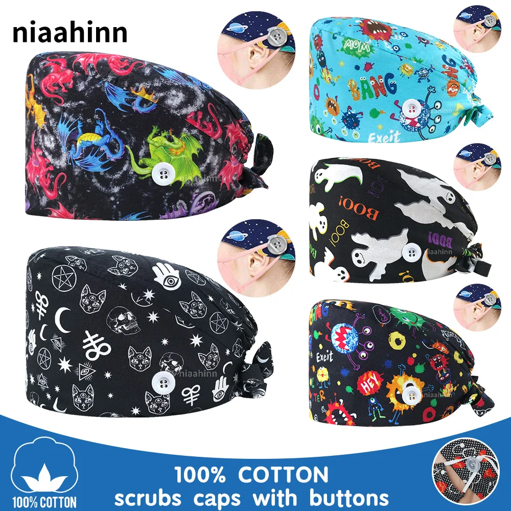 Унисекс, мультяшный рисунок, стоматологическая клиника, скраб-шляпа, больница, врач, рабочая шляпа, обезболивающая хирургия, оптовая продажа