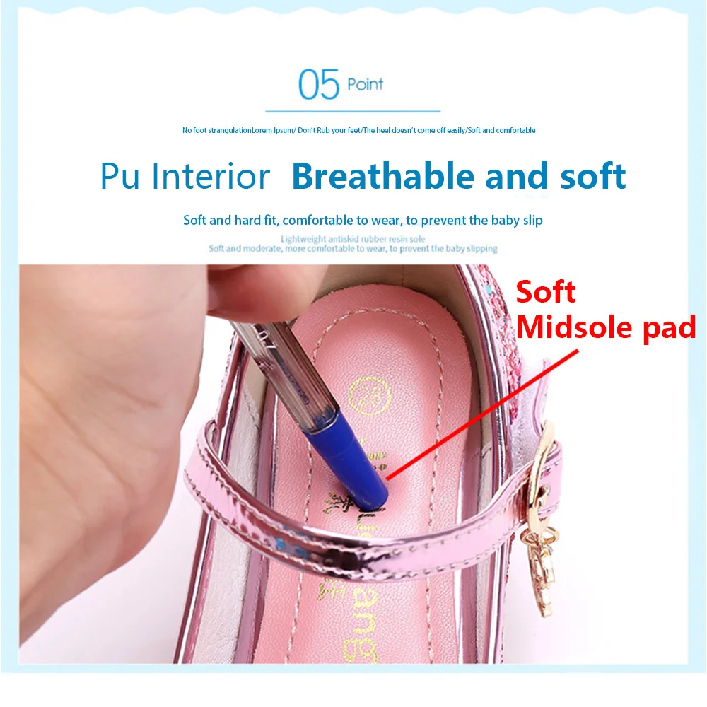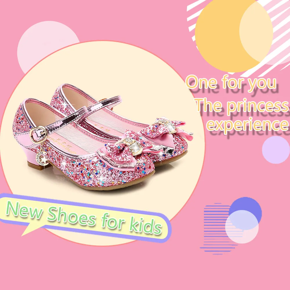 Маленькие кожаные туфли на высоком каблуке для девочек, детские повседневные туфли принцессы с цветами, блестками и украшением в виде банта, детские танцевальные туфли