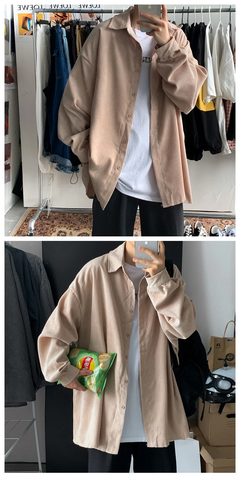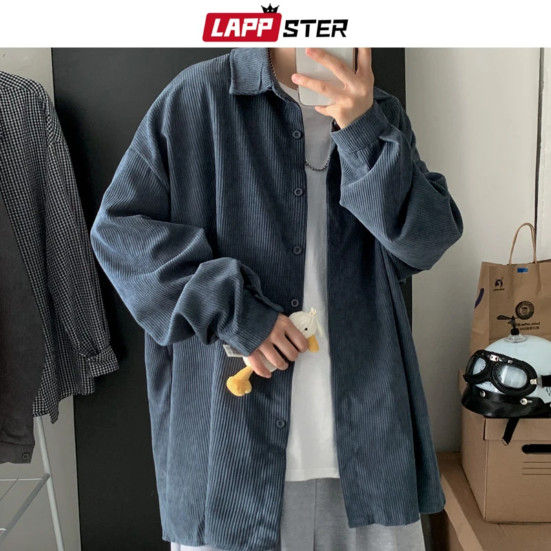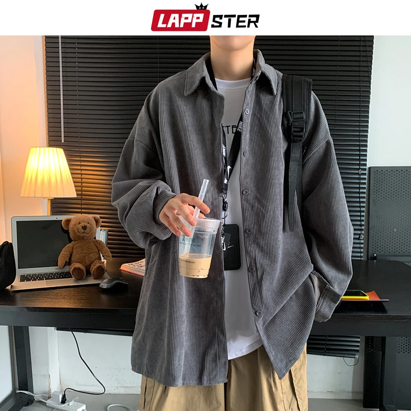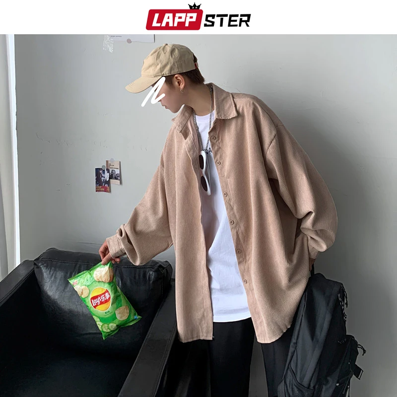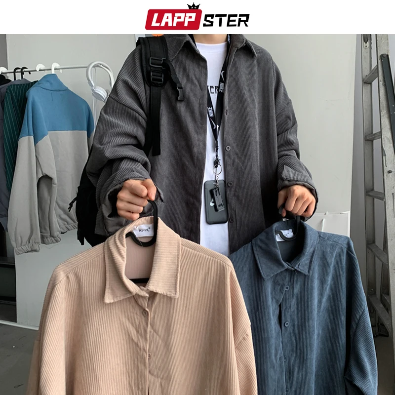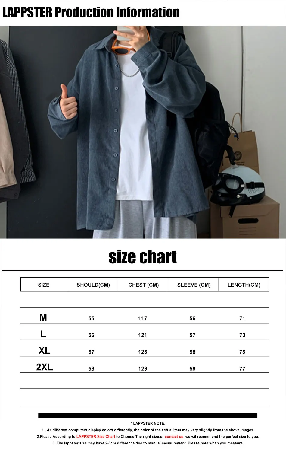 Рубашка LAPPSTER Мужская Вельветовая с длинным рукавом, винтажная цветная модная сорочка в Корейском стиле Харадзюку, Повседневная сорочка оверсайз, 2022