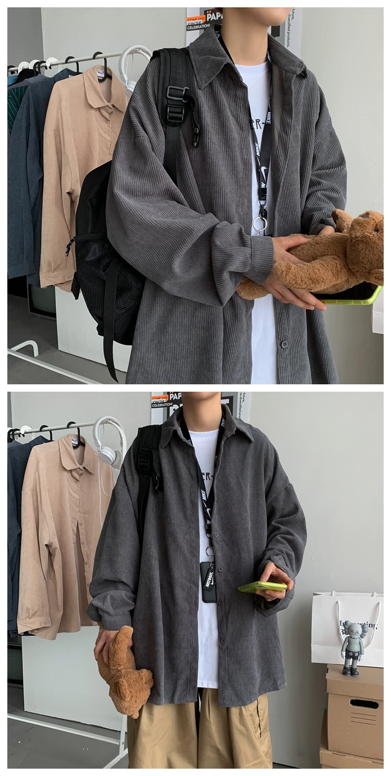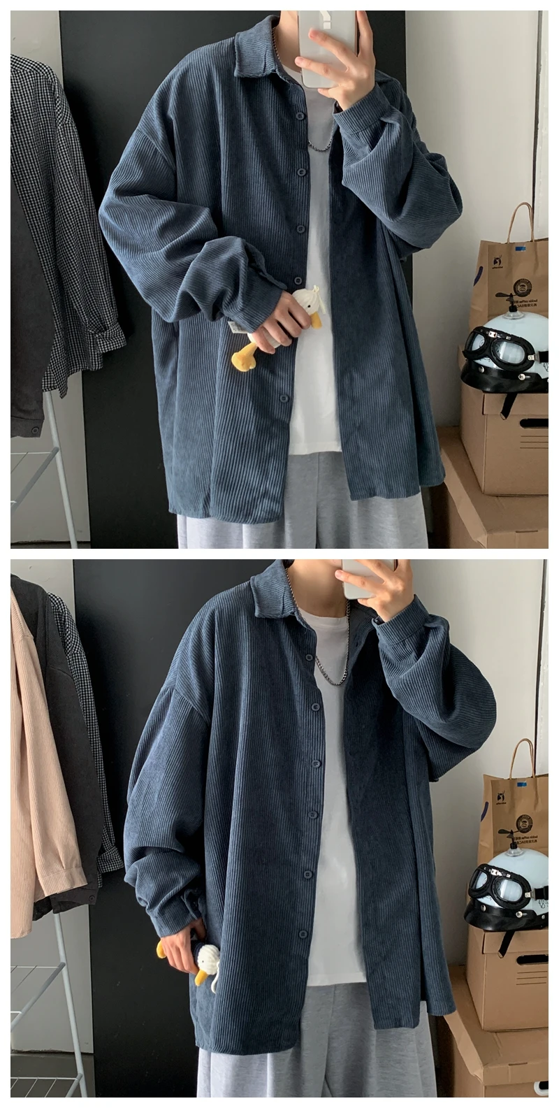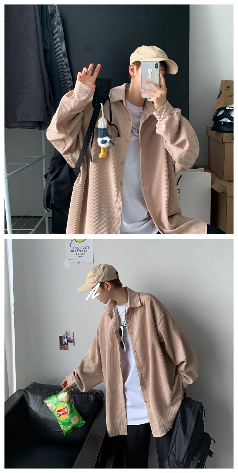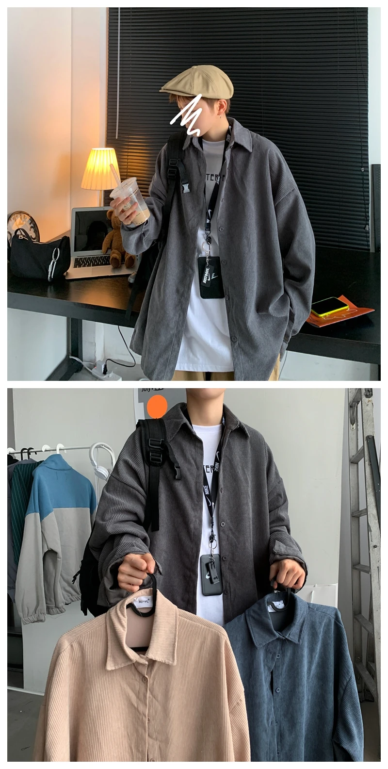 Рубашка LAPPSTER Мужская Вельветовая с длинным рукавом, винтажная цветная модная сорочка в Корейском стиле Харадзюку, Повседневная сорочка оверсайз, 2022