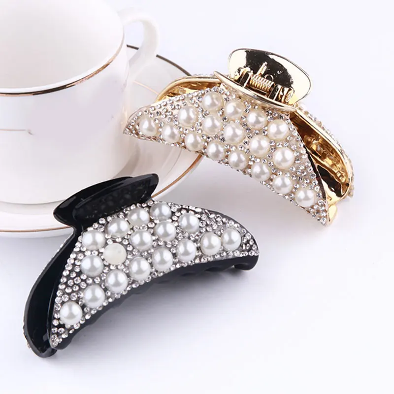 Заколка-краб для волос с жемчугом и жемчугом, тиктак, аксессуары для волос для женщин, Корейская, черная, белая, новинка 2021