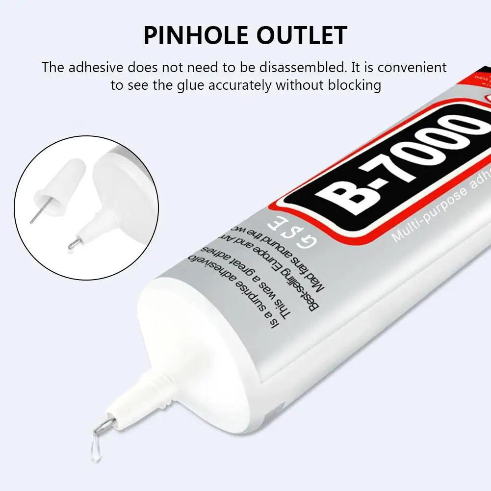 Особенности!100% Новинка!Использование иглы, может быть открыт после использования, не будет провисать. Позволяет мелким клеевым каплям для тонкой, точной, контролируемой и без беспорядка приложений!Наш клей-паста обладает хорошей адгезивной способностью, которая может прилипать к большему количеству поверхностей и обеспечить прочную связь на упрямых пористых и непористых подложках, вы можете использовать их с уверенностью!Клей B7000 разработан с высокой эластичностью, может растягиваться до длины намного дольше, чем его собственная длина, не ломаясь, эффективно скрепляясь с расширением материала с поверхностью, улучшите долговечность несущей конструкции!Многофункциональные клеи могут быть широко применены для смартфонов, планшетов, электронных компонентов, ювелирных изделий, игрушек, металла, стекла, резины, волокна, бумаги, керамики, дерева, ткани, текстиля, нейлона, ПВХ, кожа и другие материалы, удовлетворят ваши потребности!Характеристики!Тип: жидкий клейМатериал: прозрачный полужидкийЦвет: прозрачныйТвердое содержание: 28-35%После отверждения твердость: 70-85AВремя сушки поверхности: около 5-10 минутВремя полного лечения: 24-48 часовСохранение: при 10-27 градусахЕмкость: 3 мл/0.1fl.oz, 9 мл/0.3fl.ozВнимание!Возможны небольшие отклонения в размере из-за измерения человеком.Пожалуйста, держите подальше от маленьких детей.