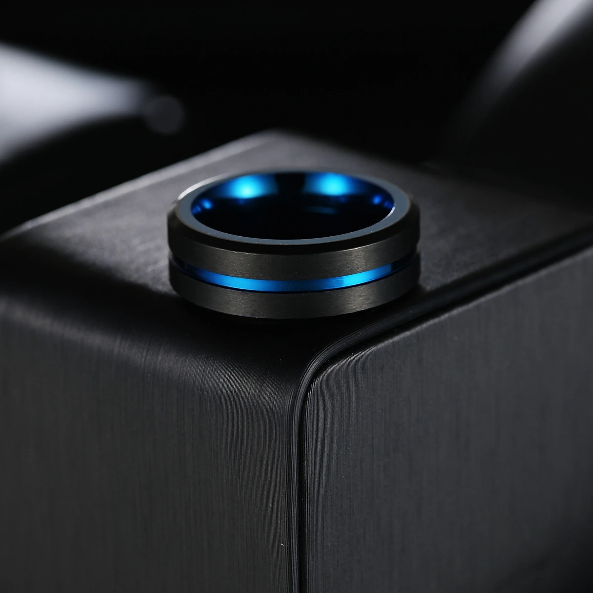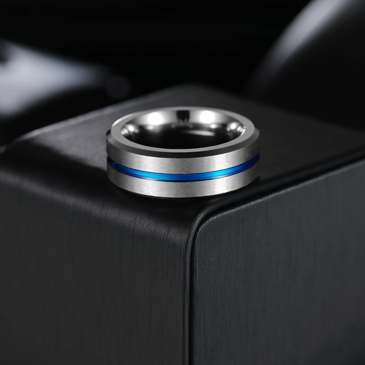 Новое мужское кольцо из карбида вольфрама 8 мм, синее, фиолетовое, вольфрамовое, стальное кольцо со скошенными краями, обручальное кольцо, размер, удобная посадка