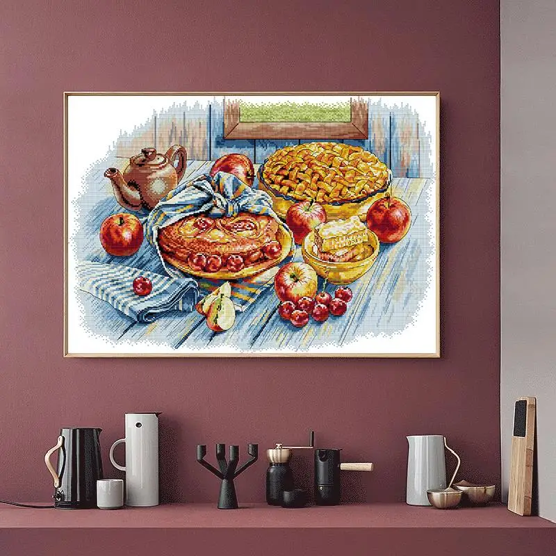 Наборы для вышивки крестиком в виде яблочного вишневого пирога, 14CT, 11CT, счетная Печать на холсте, рукоделие, Набор для вышивки, декор для кухни, подарки