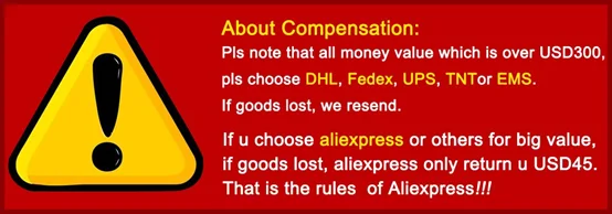 О Экспресс-логистике: при выборе медленного пути мы доставляем только поAliexpress Стандартная доставка; Если стоимость товара превышает долларов США, мы рекомендуемВыберите
