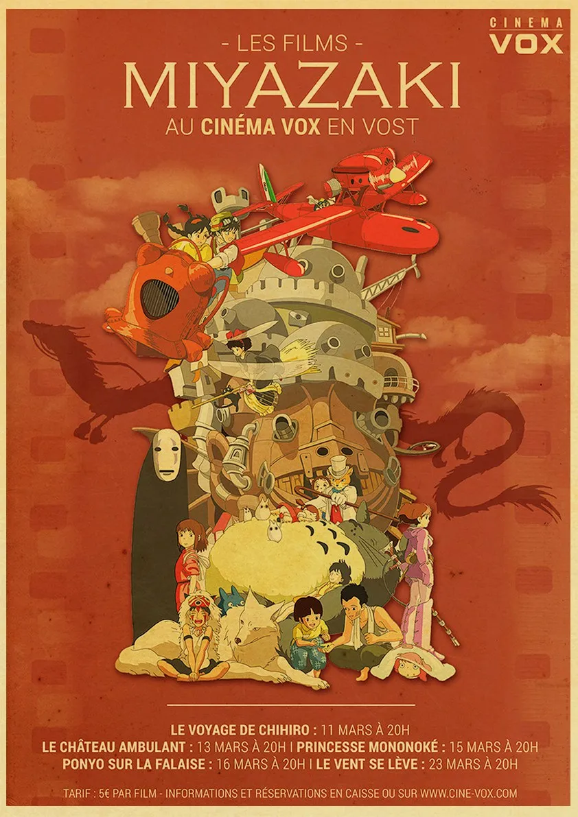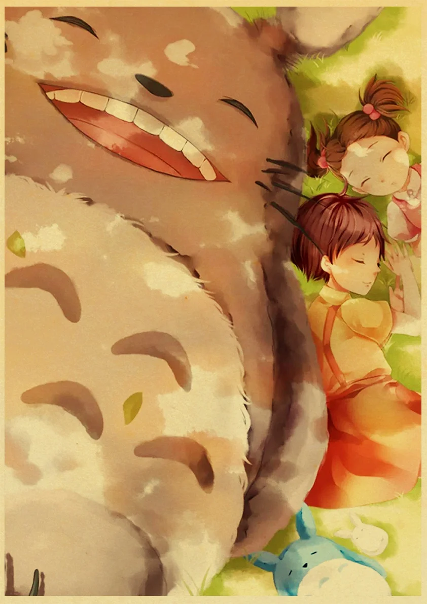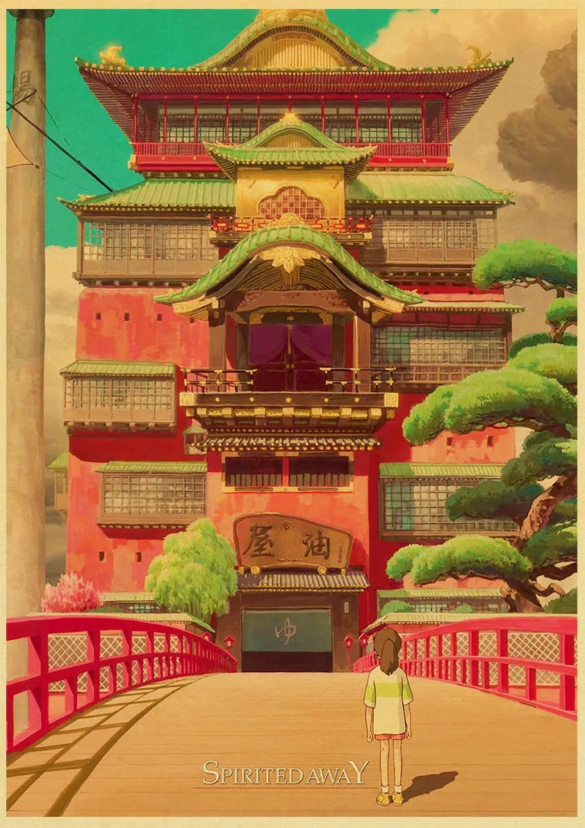 Ретро-плакат Хаяо Миядзаки, аниме, Унесенные призракамизамок ХоулаТоторо, художественная Наклейка на стену для спальни, гостиной, бара