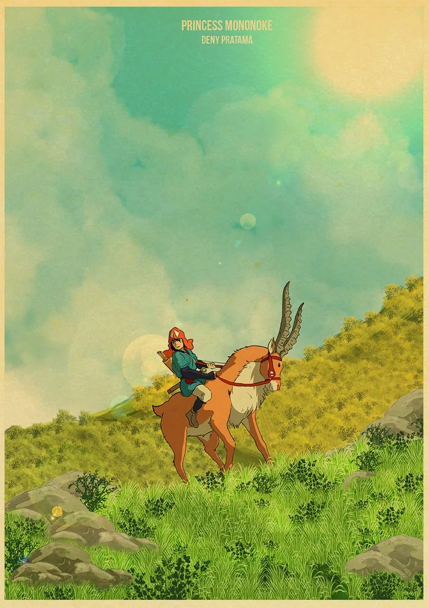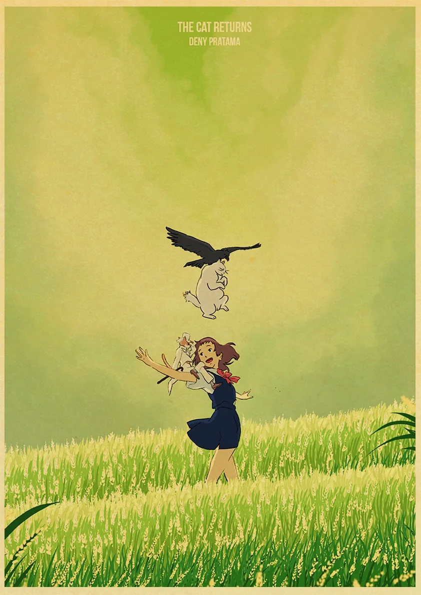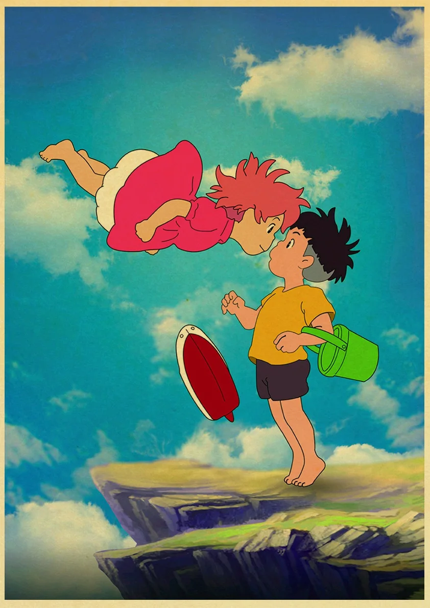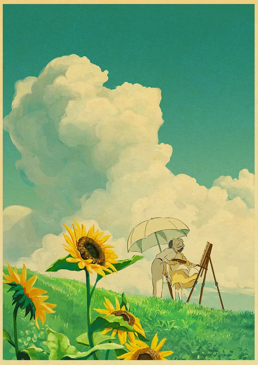 Ретро-плакат Хаяо Миядзаки, аниме, Унесенные призракамизамок ХоулаТоторо, художественная Наклейка на стену для спальни, гостиной, бара