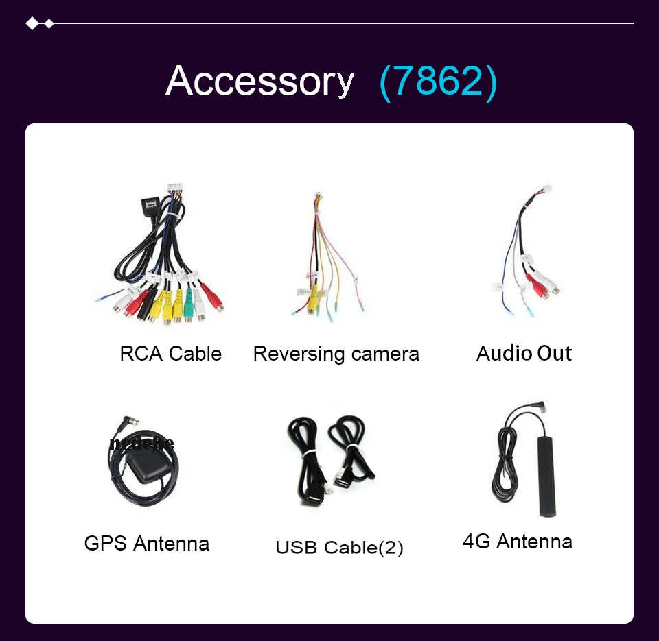 Что входит в посылку?Автомобильное радио x 1 шт. (встроенная карта)Розетка с Canbus box x 1 шт.USB кабель x 2 шт.Кабель RCA x 1 шт.Антенна GPS x 1 шт.Входной кабель камеры заднего вида x 1 шт.4G антенна x 1 шт (только 7862 версия имеет)