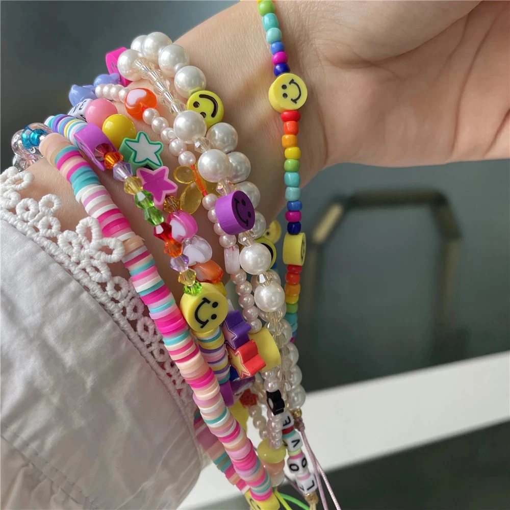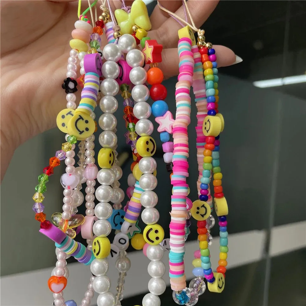Цепочка для телефона, жемчужный висячий шнур, Мягкая Керамическая веревка, цепочка с улыбающимися бусинами, шнурок для сотового телефона, ремешки для телефона