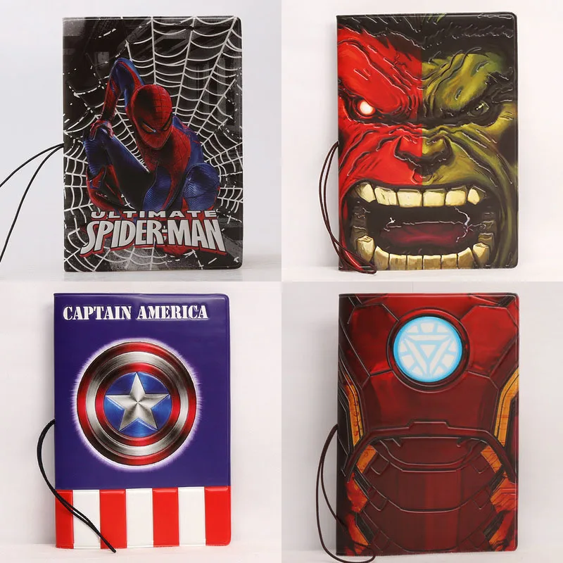 Marvel Человек-паук, Халк, искусственный паспорт, набор для ID-карт, Человек-паук, Железный человек, держатель для паспорта, деловая искусственная монета, чистый паспорт
