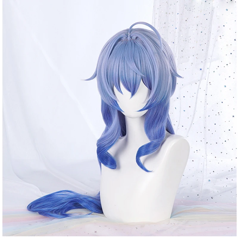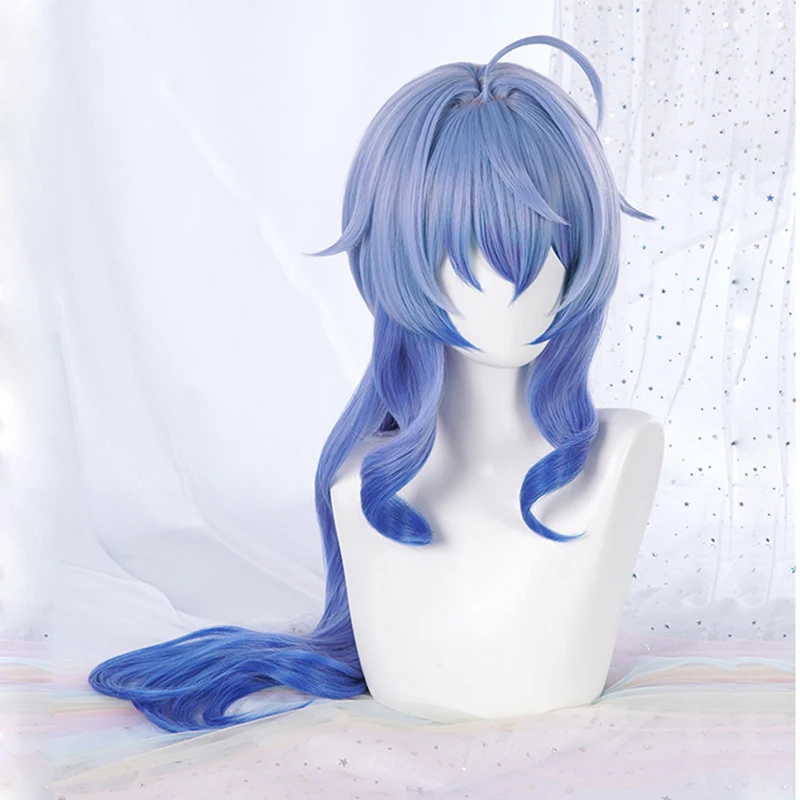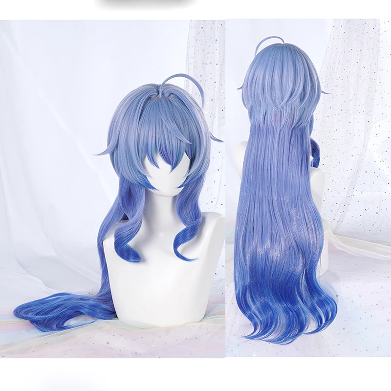 Парик для косплея ганью из Game Genshin Impact, термостойкий синий парик для косплея из длинных синтетических волос, с шапочкой