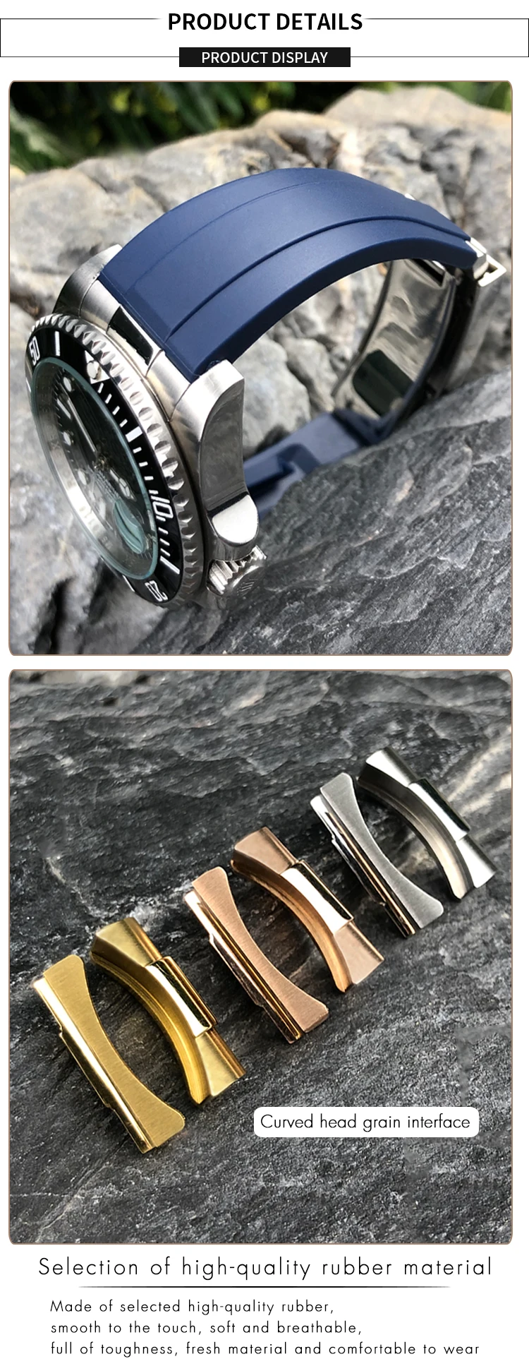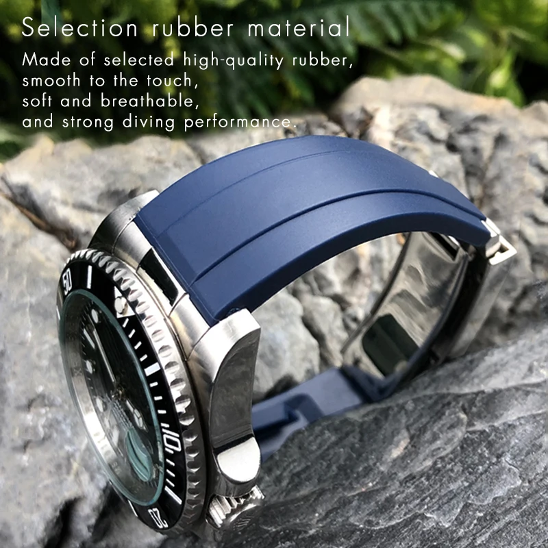 20 мм резиновый ремешок для часов металлический изогнутый конец подходит для Rolex OYSTERFLEX Submariner GMT Daytona застежка регулируемый ремешок для часов