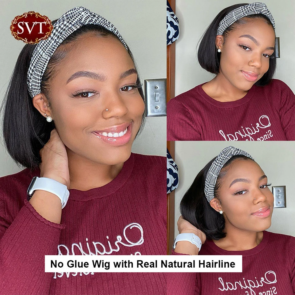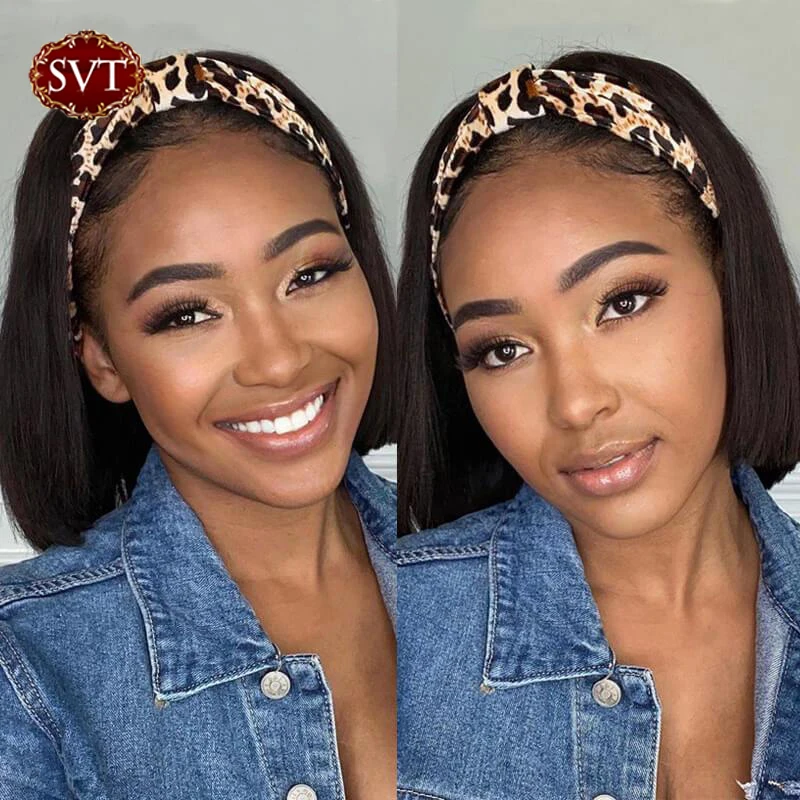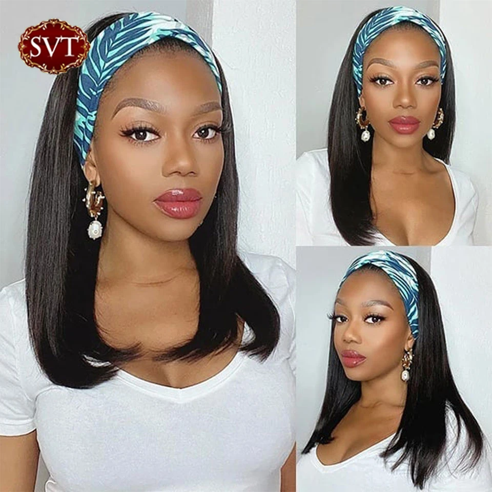 SVT Bob парик с головной повязкой человеческие волосы парики для чернокожих женщин безклеевые натуральные перурийские дешевые человеческие волосы прямые короткие боб парик с головной повязкой s