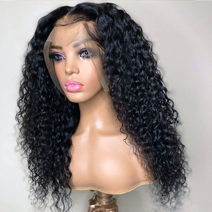 Средняя часть 180% Плотность 26 дюймов длинный кудрявый синтетический натуральный черный кружевной передний парик для женщин Babyhair Preplucked ежедневно